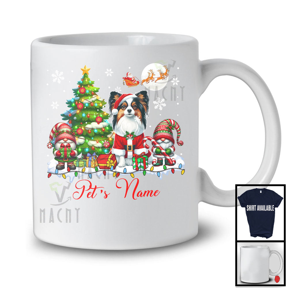 This Personalized Custom Name Santa Papillon With Gnome, Lovely X-mas Tree, Snow Around T-Shirt is great idea gift for your family, friends in this birthday, christmas, mother's day, father's day, patrick's day or any holiday.