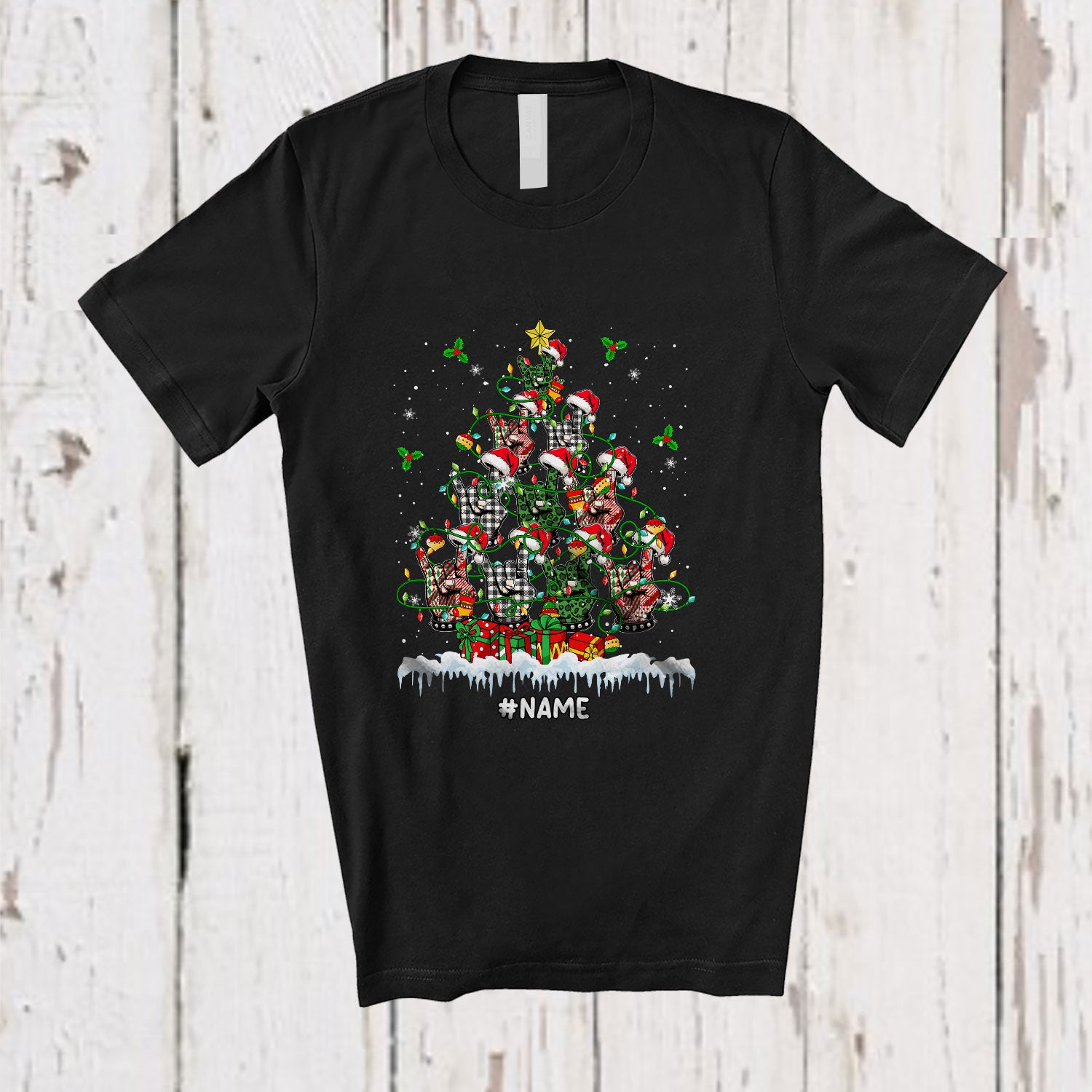 Personalized Custom Name Santa Plaid Rock Sign Hand X-mas Tree; Joyful Lights ASL Sign Language T-Shirt