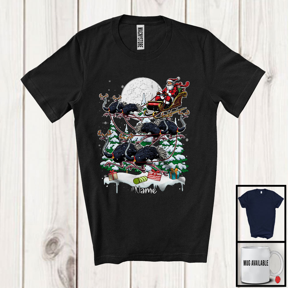 Personalized Custom Name Santa Riding Ostrich Reindeer; Amazing Christmas Moon Trees T-Shirt