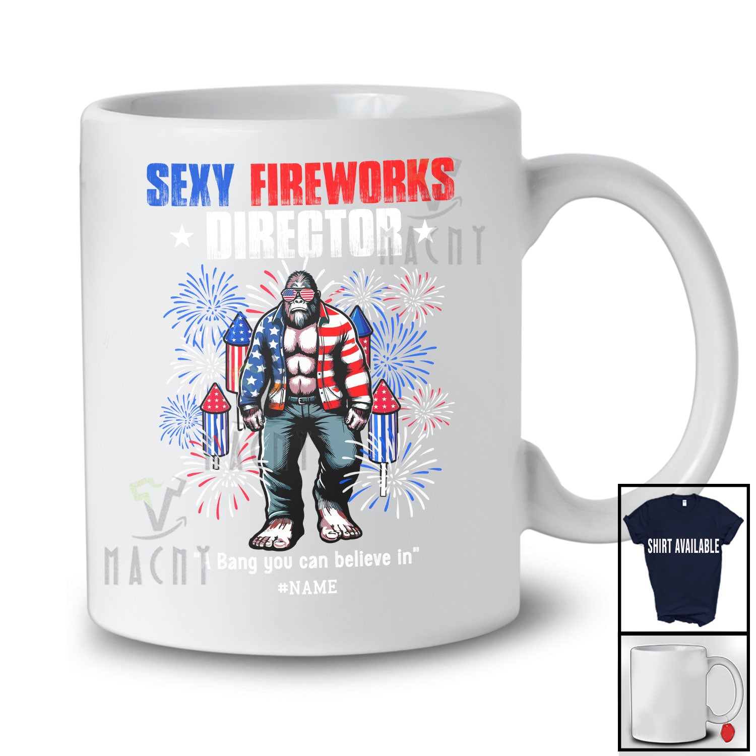 • Personalized Custom Name Sexy Fireworks Director; Amusing 4th Of July Bigfoot Patriotic T-Shirt. This cotton t-shirt is a durable staple product with a classic fit. One of the most popular items, it has a relaxed style made for everyday and casual wear.