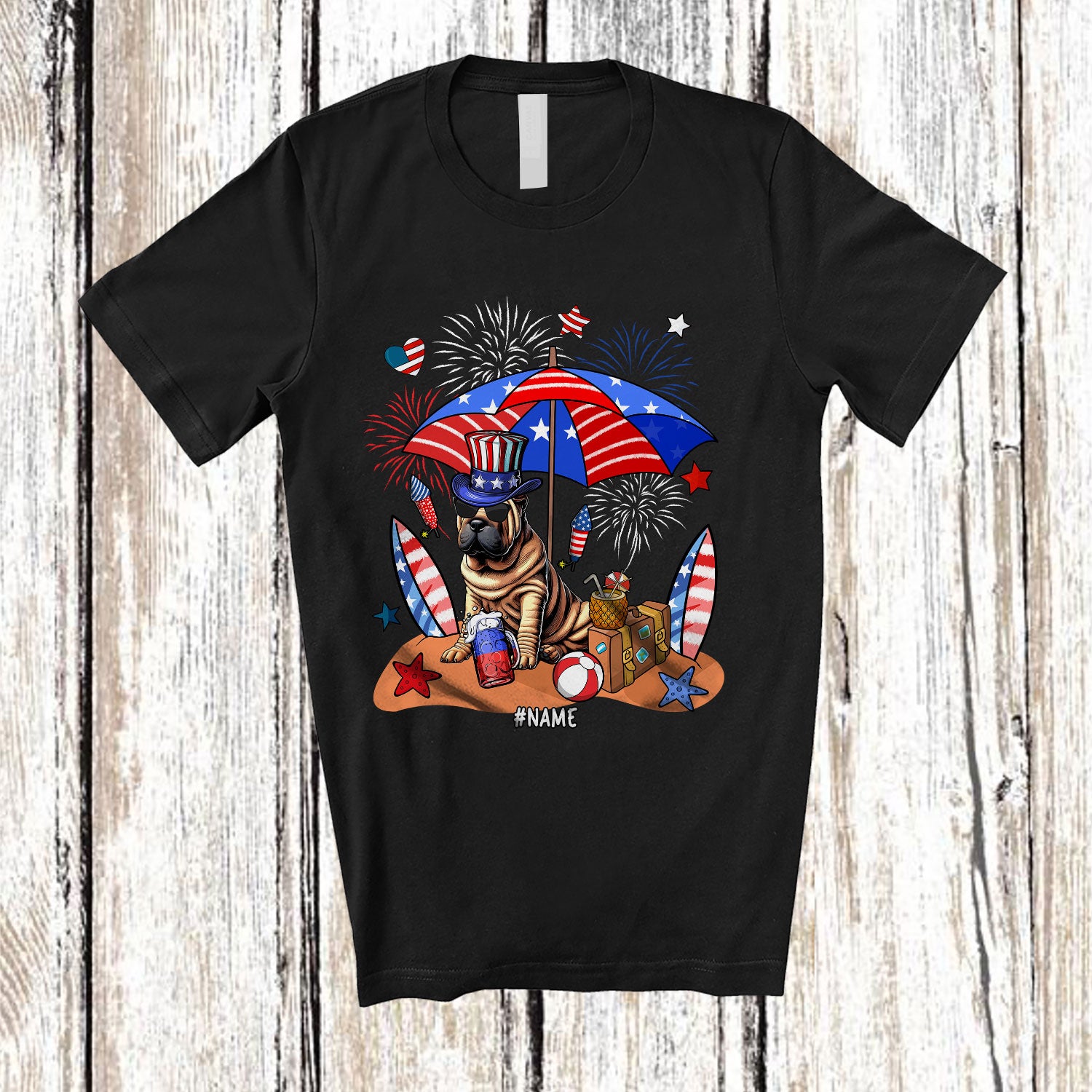 Personalized Custom Name Shar Pei Relax Wait For 4th of July; Lovely US Flag Patriotic T-Shirt