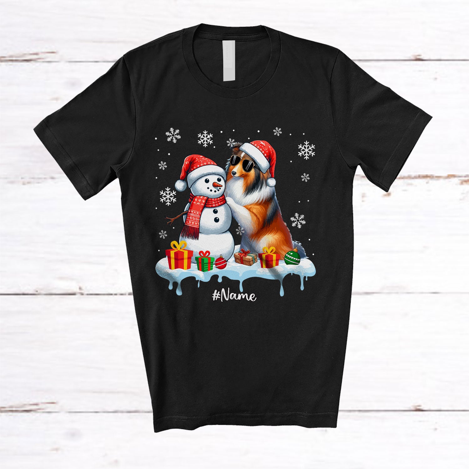 Personalized Custom Name Shelties Build Snowman; Lovely Snow Santa Shelties; Family T-Shirt