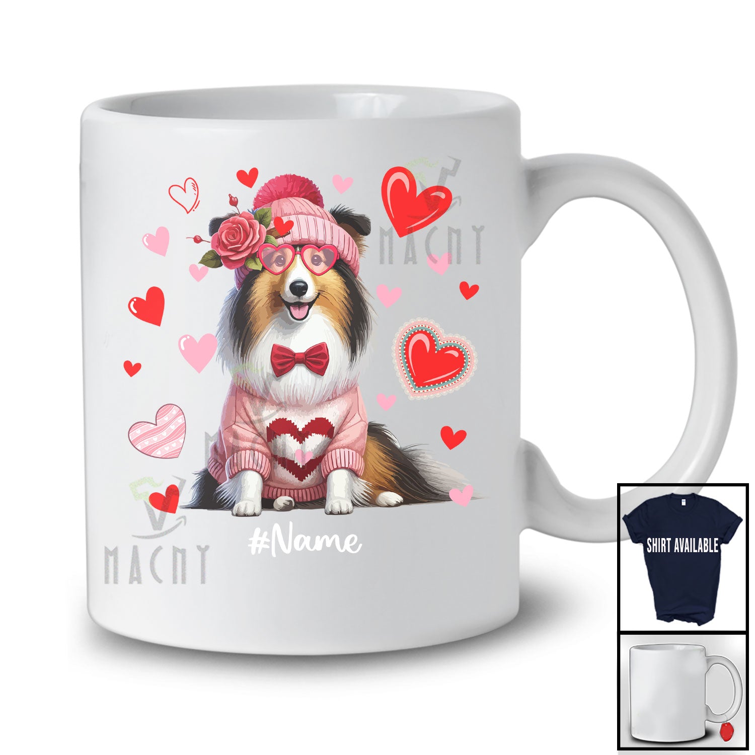 Personalized Custom Name Shelties Heart Sunglasses; Lovely Valentine Hearts; Family T-Shirt