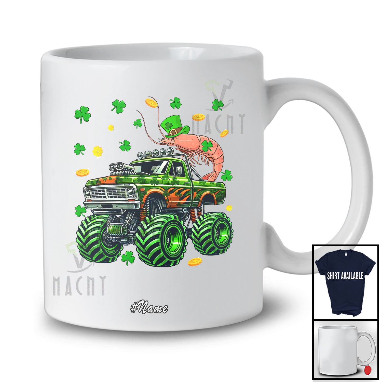 new MacnyStore - Personalized Custom Name Shrimp On Monster Truck; Joyful St. Patrick's Day Shamrock Sea Animal T-Shirt – Macnystore