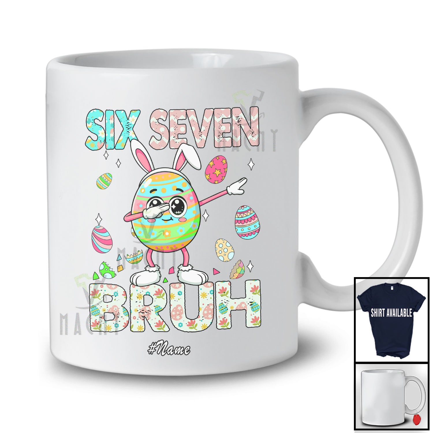Personalized Custom Name Six Seven Bruh; Adorable Easter Bunny Egg Dabbing 6 7; Eggs Hunting T-Shirt. This cotton t-shirt is a durable staple product with a classic fit. One of the most popular items, it has a relaxed style made for everyday and casual wear.