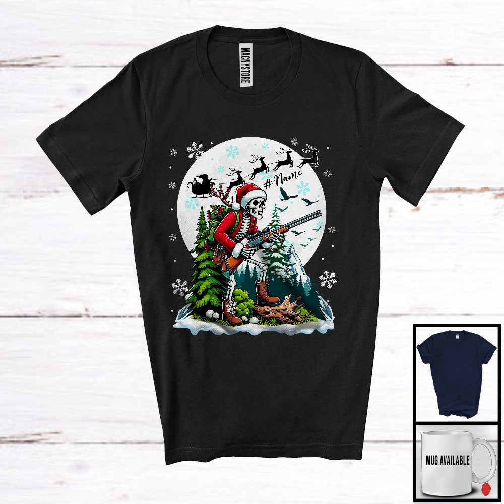 Personalized Custom Name Skeleton Hunting; Joyful Christmas Moon Tree Skeleton; Family T-Shirt