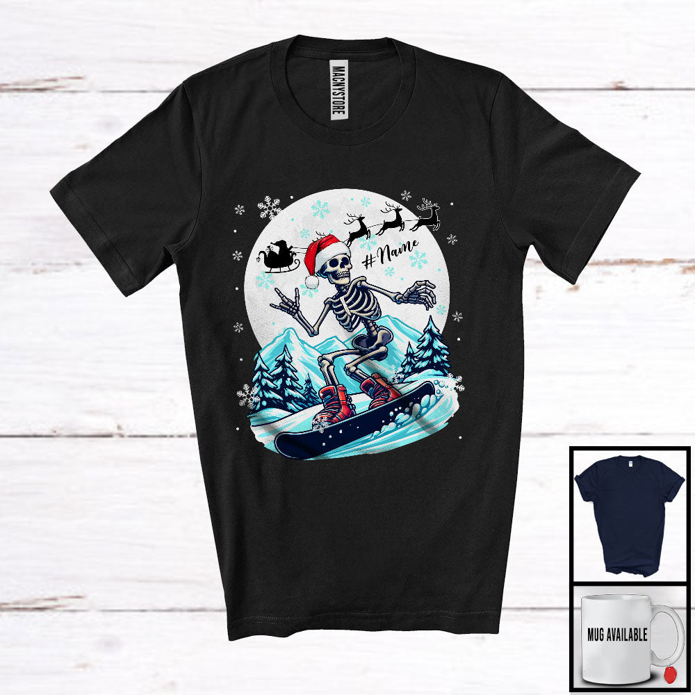 Personalized Custom Name Skeleton Snowboarding; Joyful Christmas Moon Tree Skeleton; Family T-Shirt