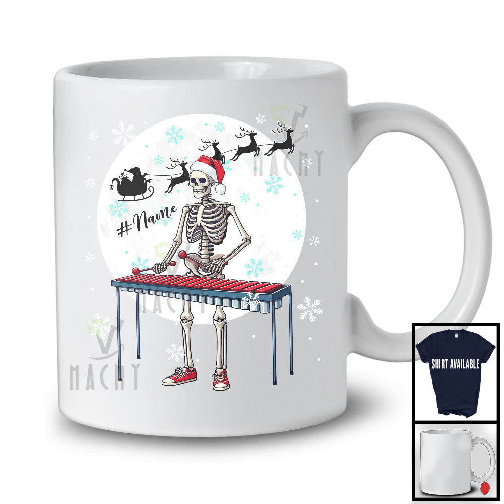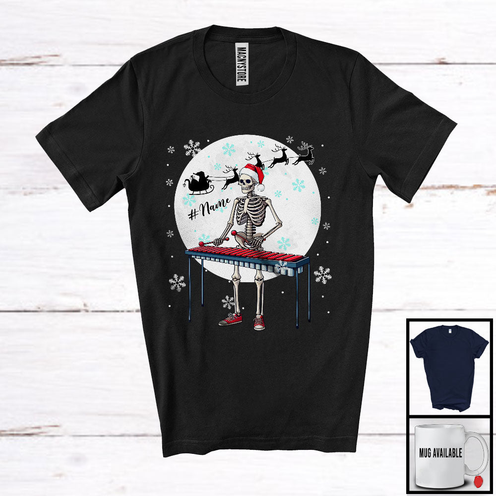 Personalized Custom Name Skeleton Xylophone Player; Joyful Christmas Moon; Musical Instruments T-Shirt