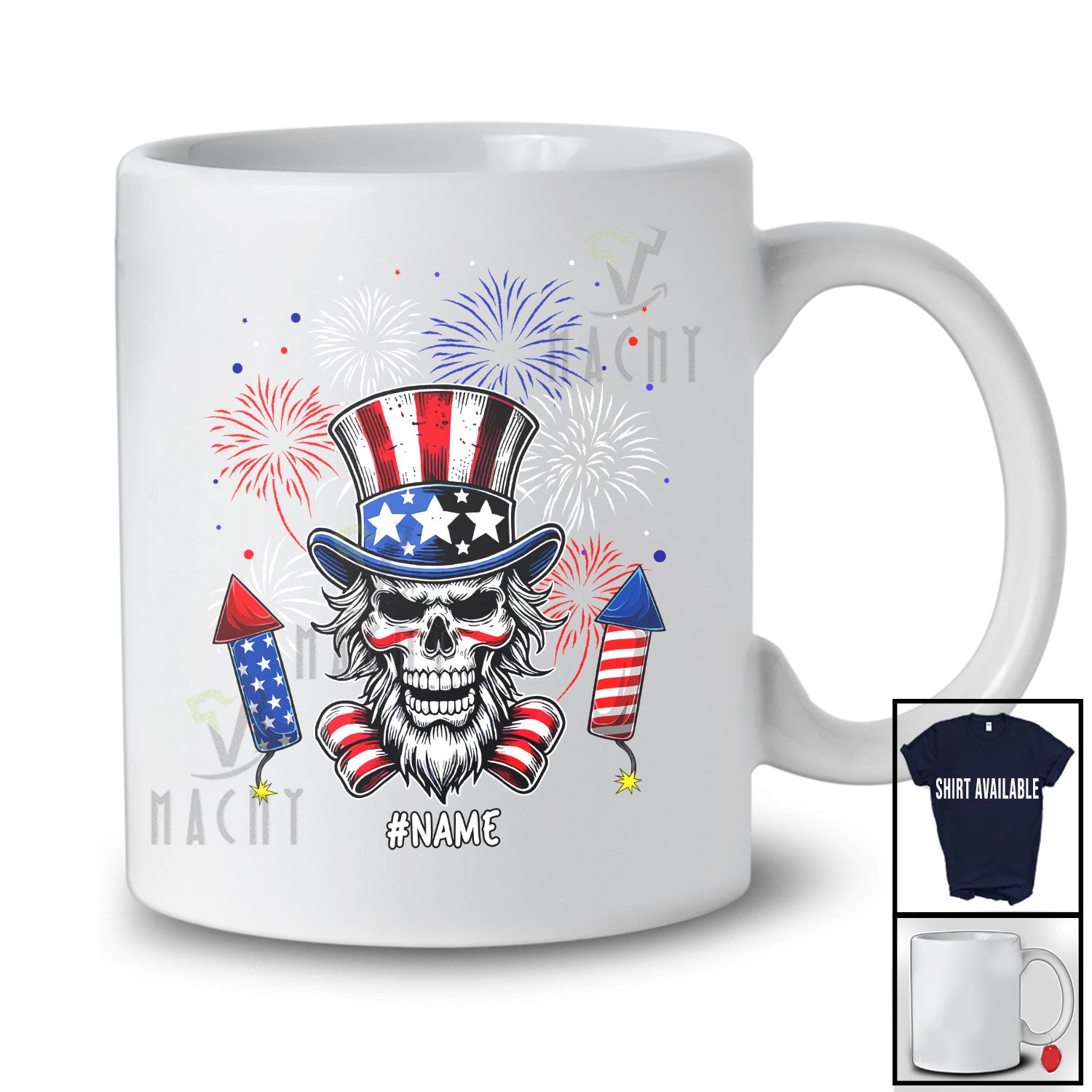 • Personalized Custom Name Skull With Fireworks; Amazing 4th Of July Family Patriotic T-Shirt. This cotton t-shirt is a durable staple product with a classic fit. One of the most popular items, it has a relaxed style made for everyday and casual wear.