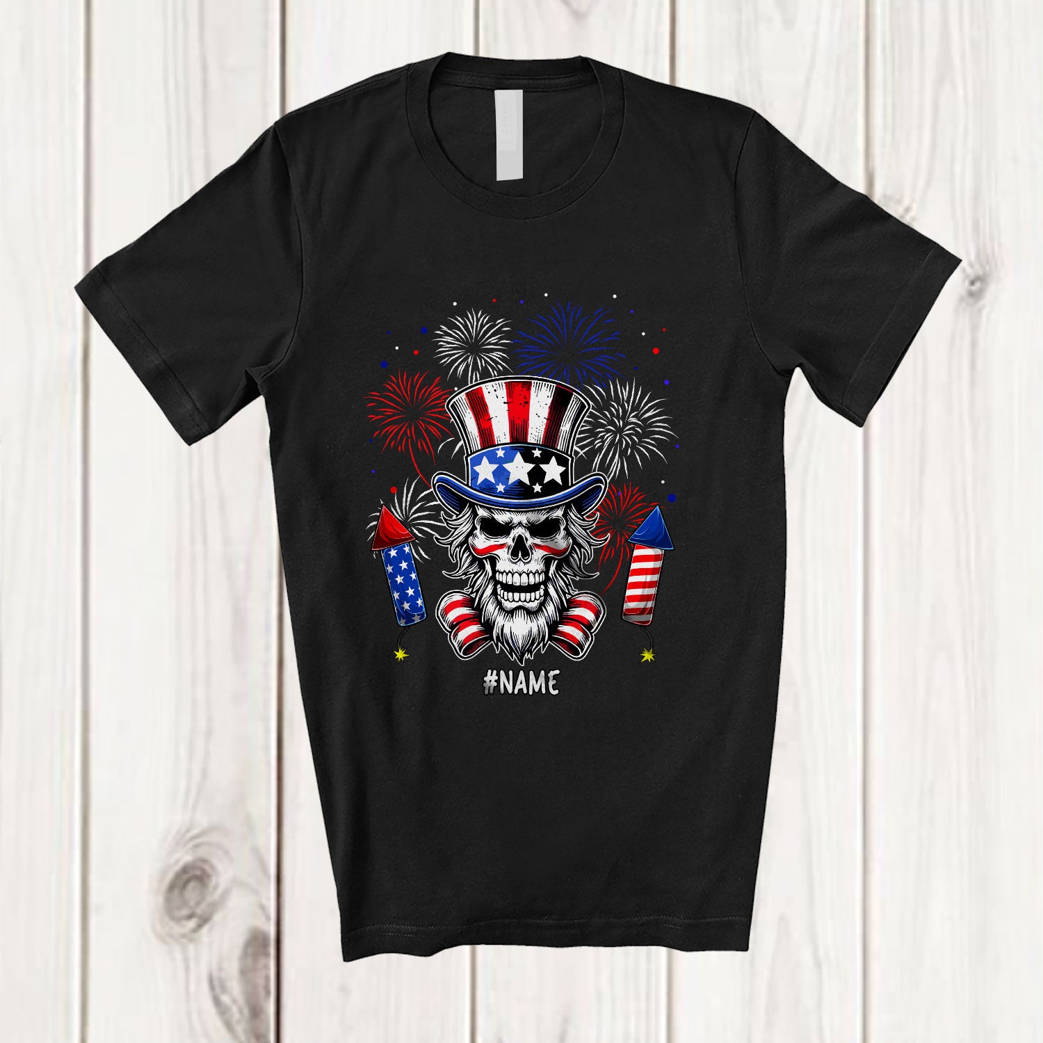Personalized Custom Name Skull With Fireworks; Amazing 4th Of July Family Patriotic T-Shirt