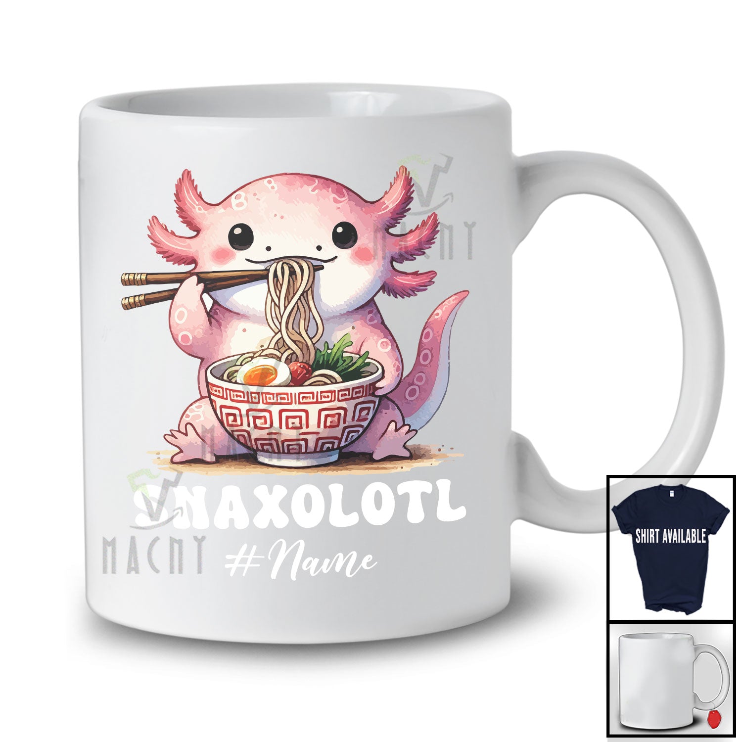 The Personalized Custom Name Snaxolotl; Adorable Kawaii Axolotls Ramen Girl Lover; Family T-Shirt destined to impress, and priced at only $12.95, for a limited time.
