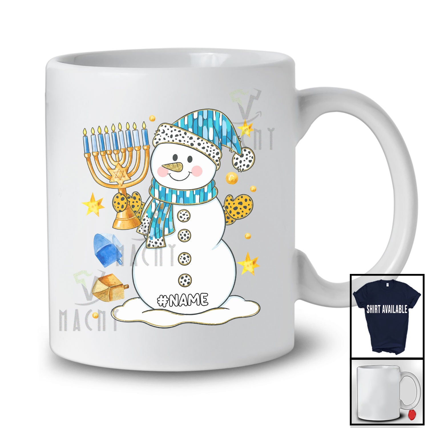• Personalized Custom Name Snowman Hanukkah Lights; Lovely Chanukah Dreidel Family T-Shirt. This cotton t-shirt is a durable staple product with a classic fit. One of the most popular items, it has a relaxed style made for everyday and casual wear.