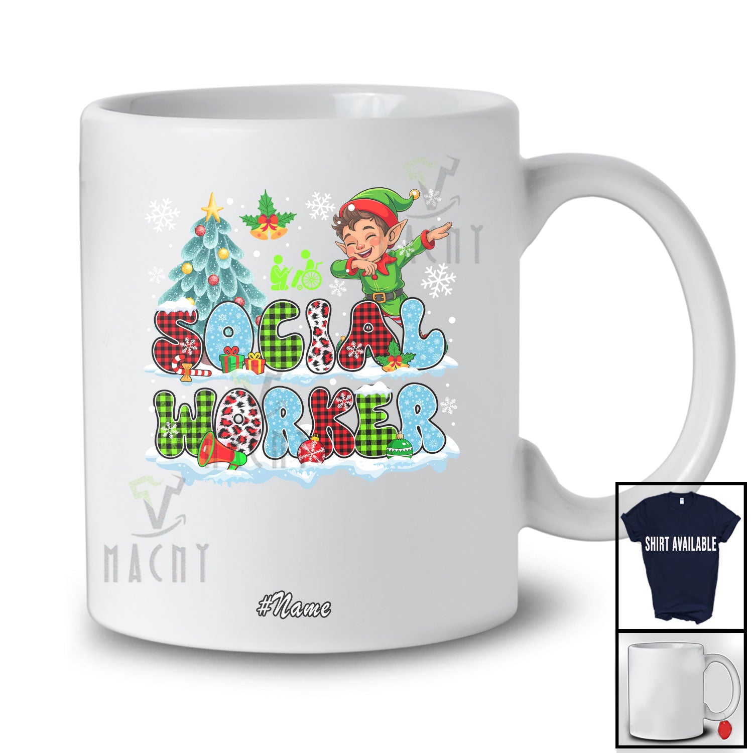 new MacnyStore - Personalized Custom Name Social Worker; Cheerful Christmas Tree Snow Dabbing Elf; Proud Jobs T-Shirt – Macnystore