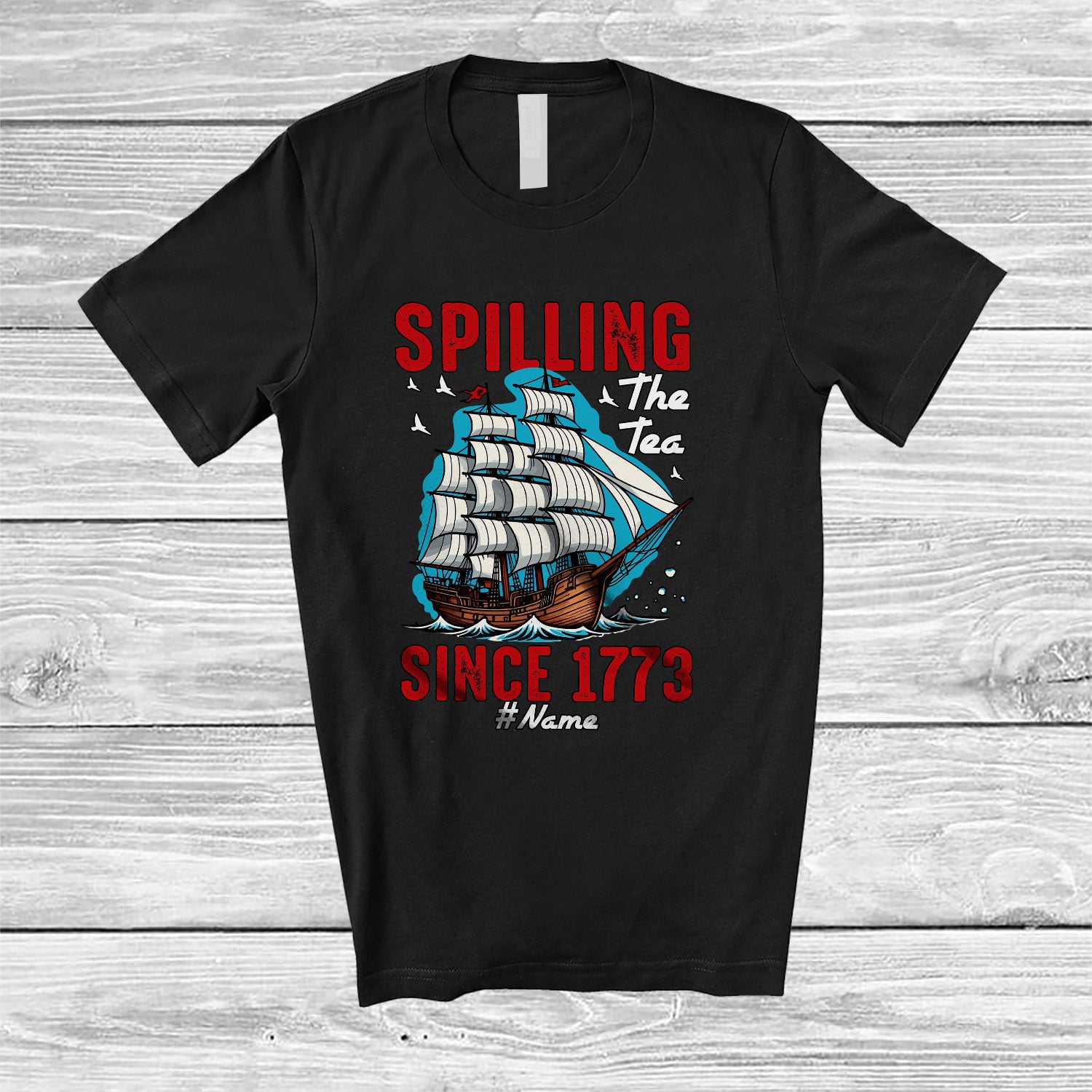 Personalized Custom Name Spilling The Tea Since 1773; Awesome 4th of July American; Patriotic T-Shirt