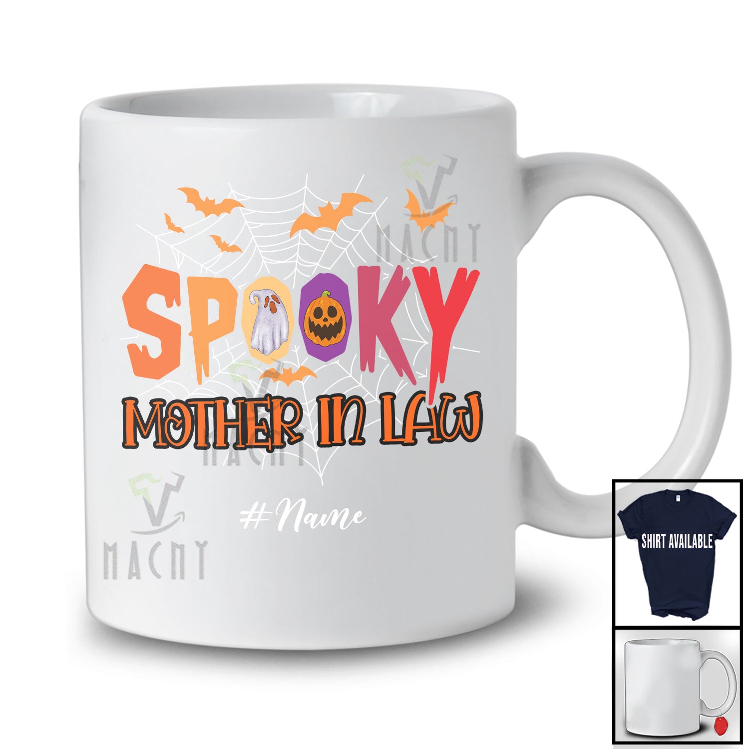 new MacnyStore - Personalized Custom Name Spooky Mother in Law; Creepy Halloween Spider Web Boo Pumpkin; Family T-Shirt – Macnystore