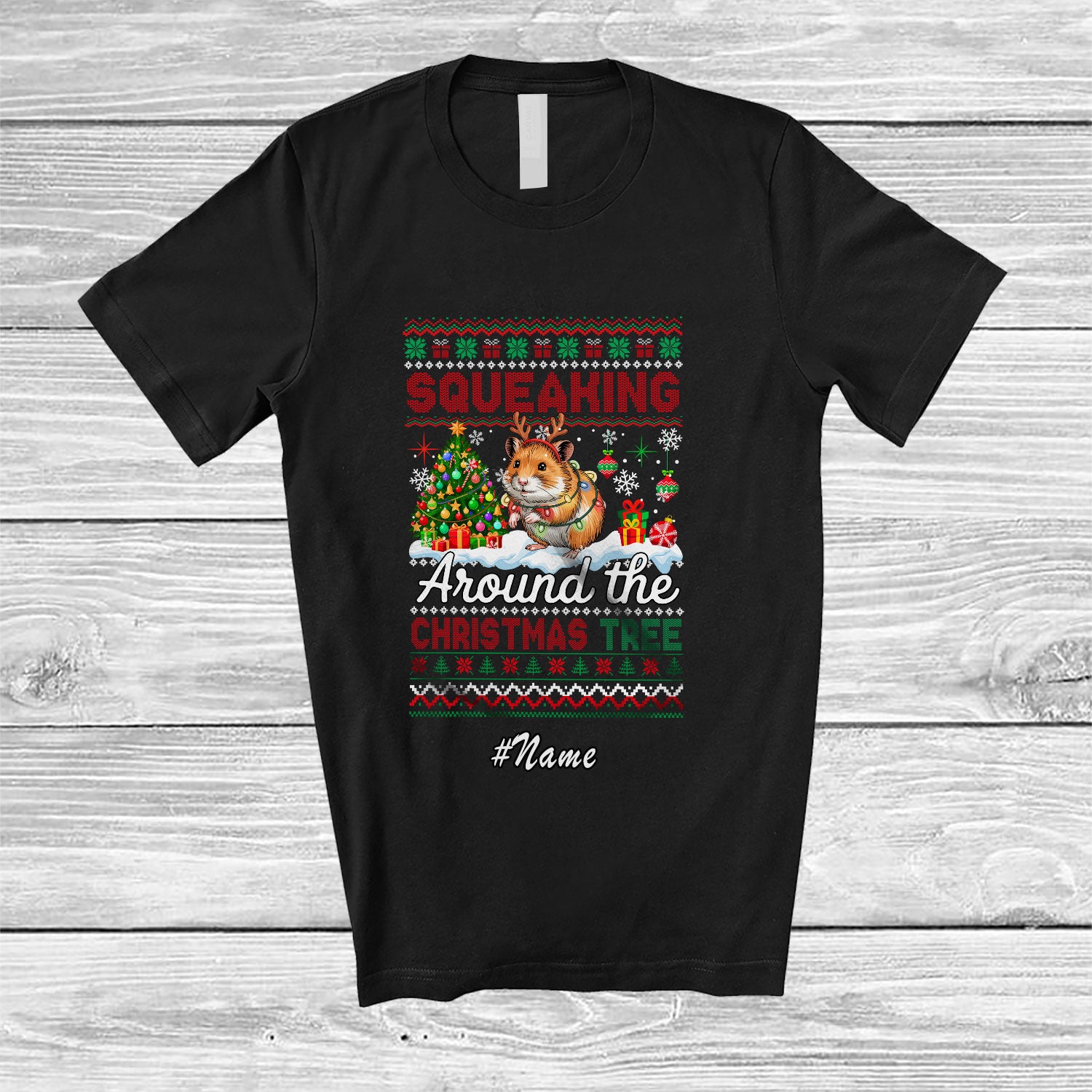 Personalized Custom Name Squeaking Around Christmas Tree; Lovely Sweater Santa Reindeer Hamster T-Shirt