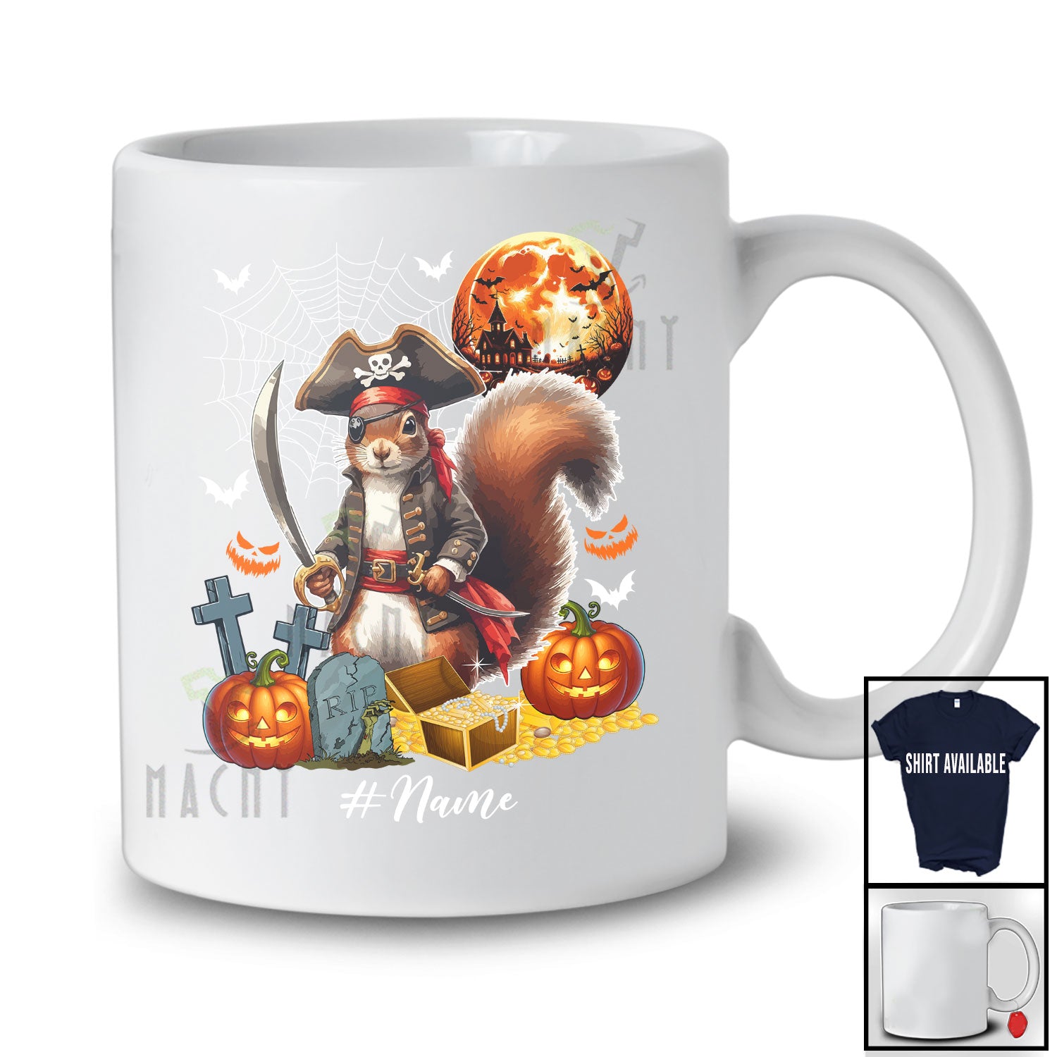 • Personalized Custom Name Squirrel Pirate; Lovely Halloween Squirrel Wild Animal Pumpkin T-Shirt. This cotton t-shirt is a durable staple product with a classic fit. One of the most popular items, it has a relaxed style made for everyday and casual wear.