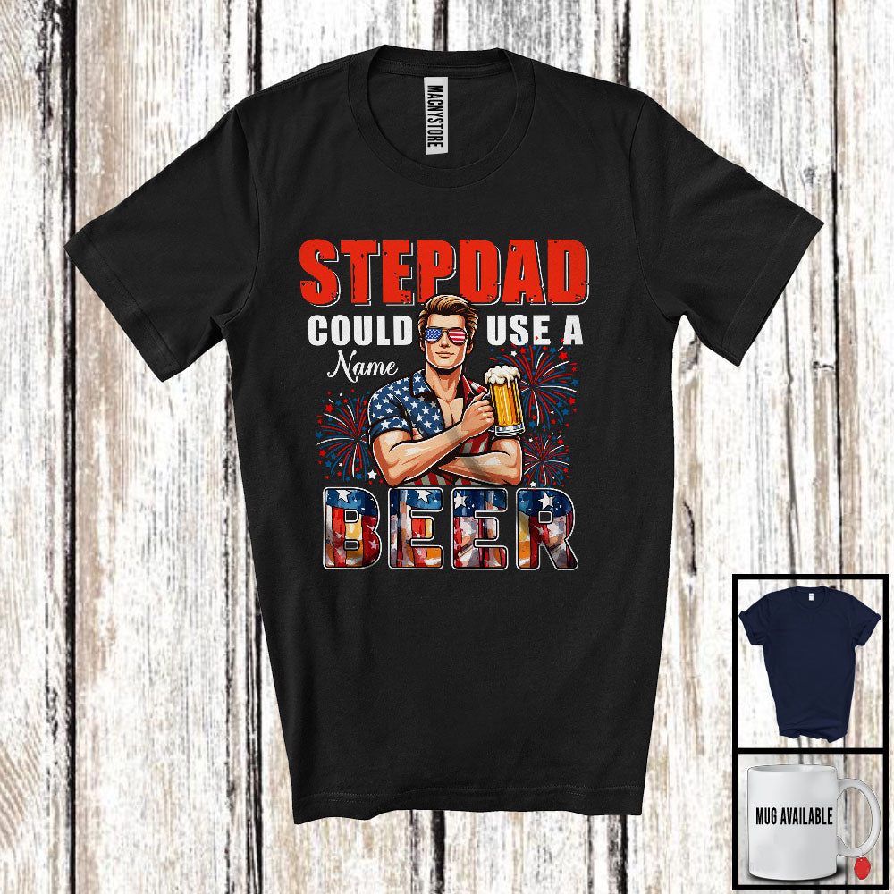 Personalized Custom Name Stepdad Could Use A Beer, Happy 4th Of July Drinking, Patriotic T-Shirt