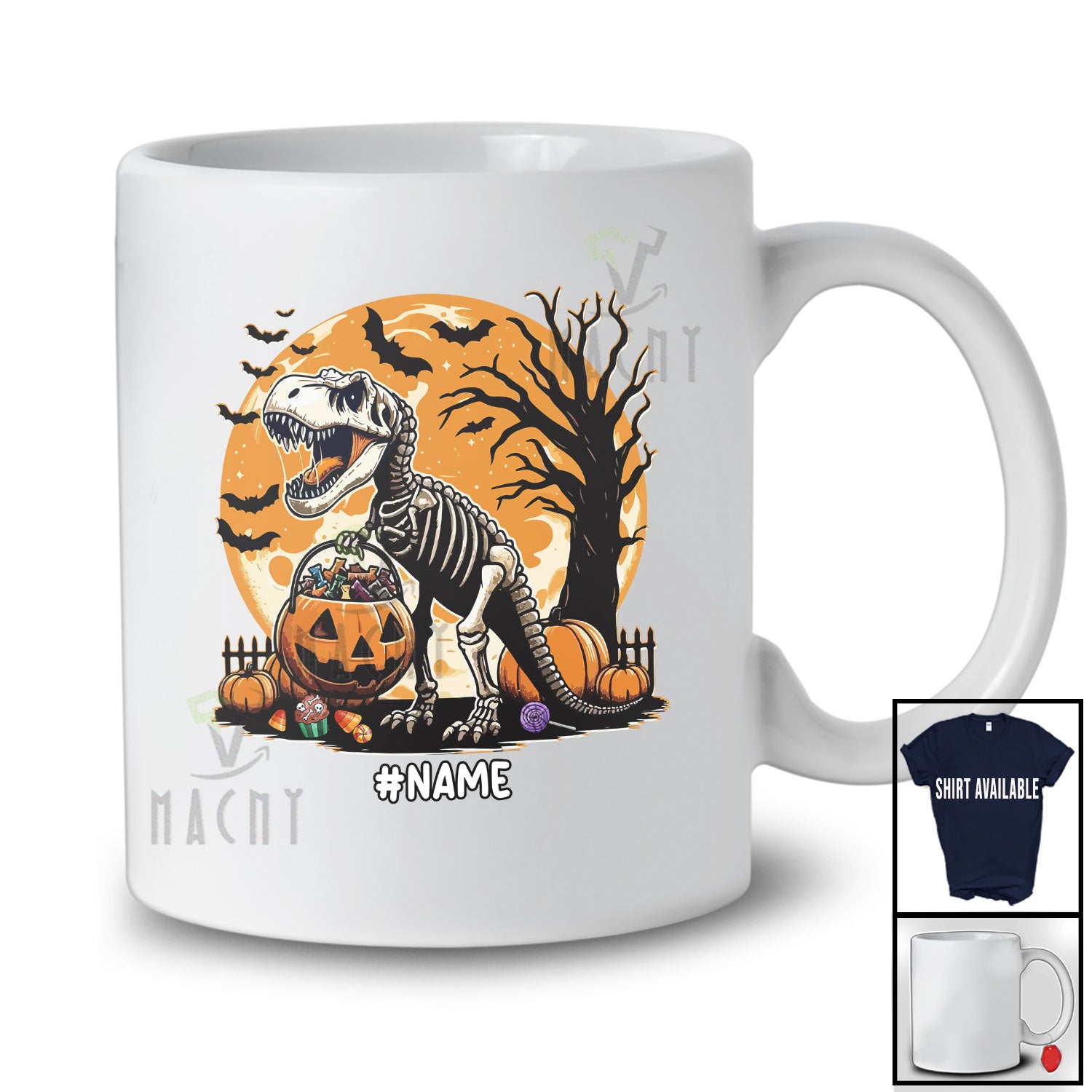The Personalized Custom Name T-Rex Skeleton Trick Candy; Scary Halloween Moon Dinosaur; Family T-Shirt destined to impress, and priced at only $12.95, for a limited time.