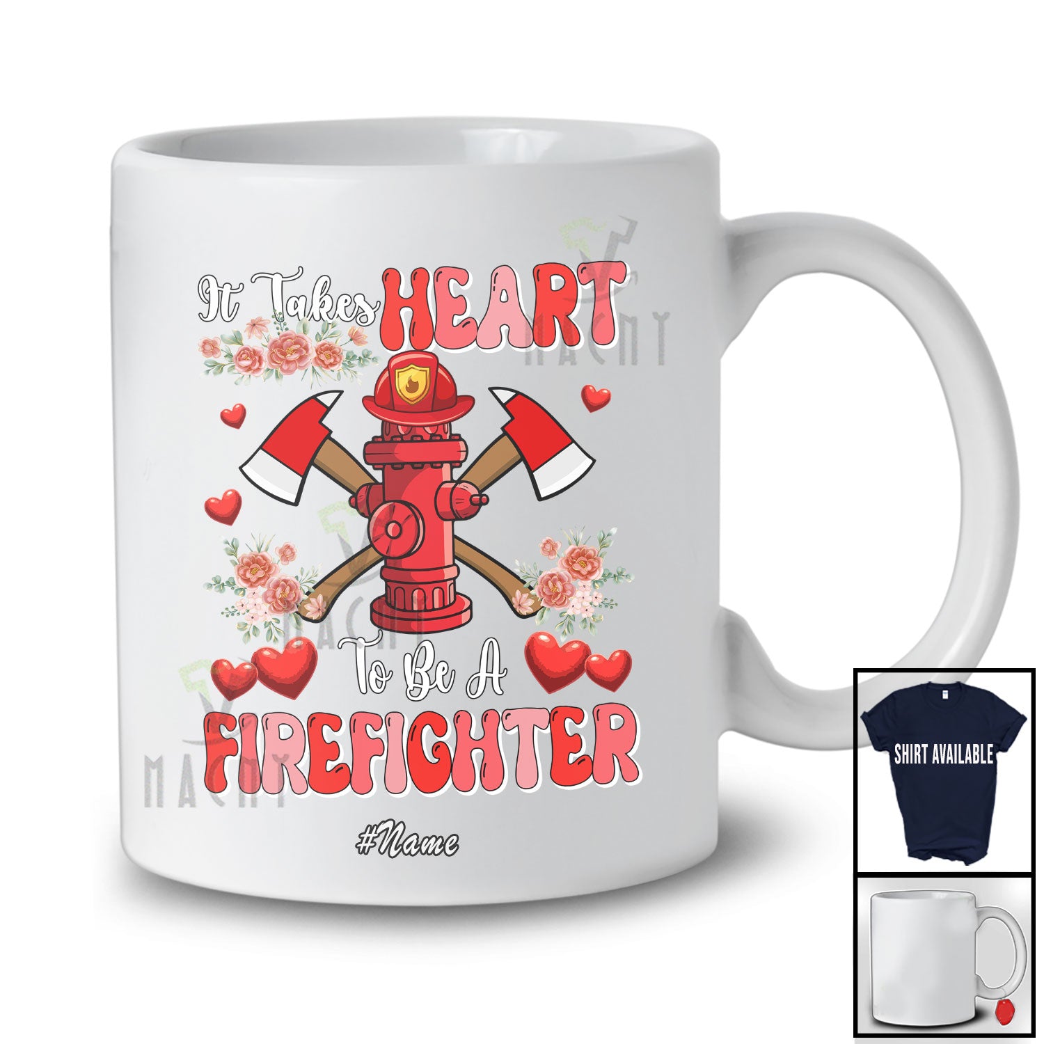 This Personalized Custom Name Takes Heart To Be A Firefighter; Lovely Valentine Flowers Hearts Proud T-Shirt is great idea gift for your family, friends in this birthday, christmas, mother's day, father's day, patrick's day or any holiday.