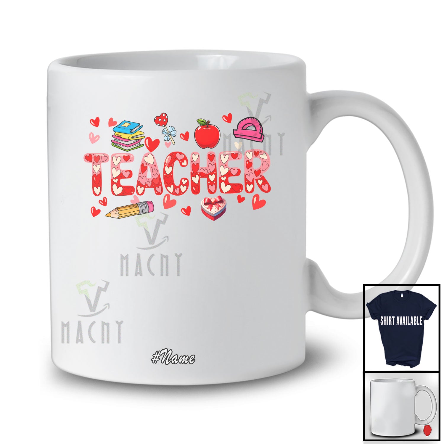 The Personalized Custom Name Teacher; Lovely Valentine Hearts School Tools; Women Proud Jobs T-Shirt destined to impress, and priced at only $12.95, for a limited time.