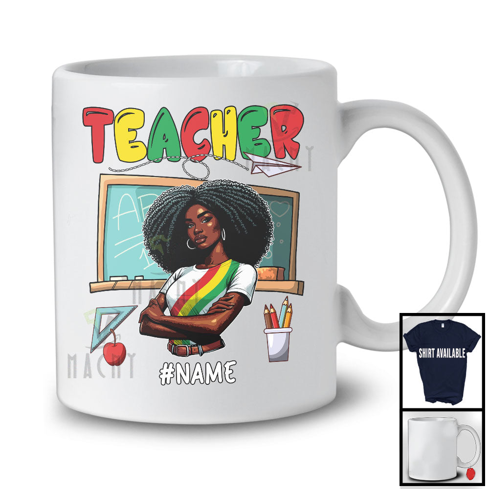 Personalized Custom Name Teacher, Proud Juneteenth Afro Girl Women, Black African American T-Shirt
