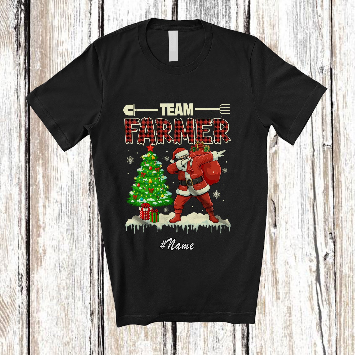 Personalized Custom Name Team Farmer; Amusing Christmas Tree Dabbing Santa Plaid T-Shirt