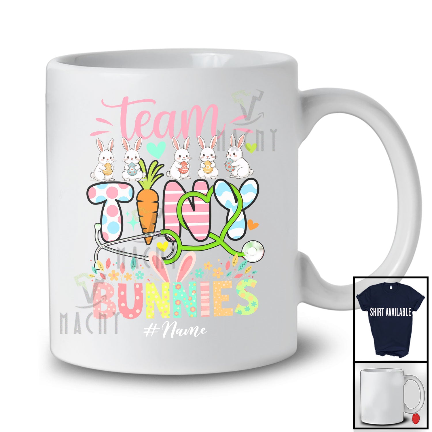 Personalized Custom Name Team Tiny Bunnies; Amazing Easter Bunny Colorful Easter Eggs; Family T-Shirt. This cotton t-shirt is a durable staple product with a classic fit. One of the most popular items, it has a relaxed style made for everyday and casual wear.