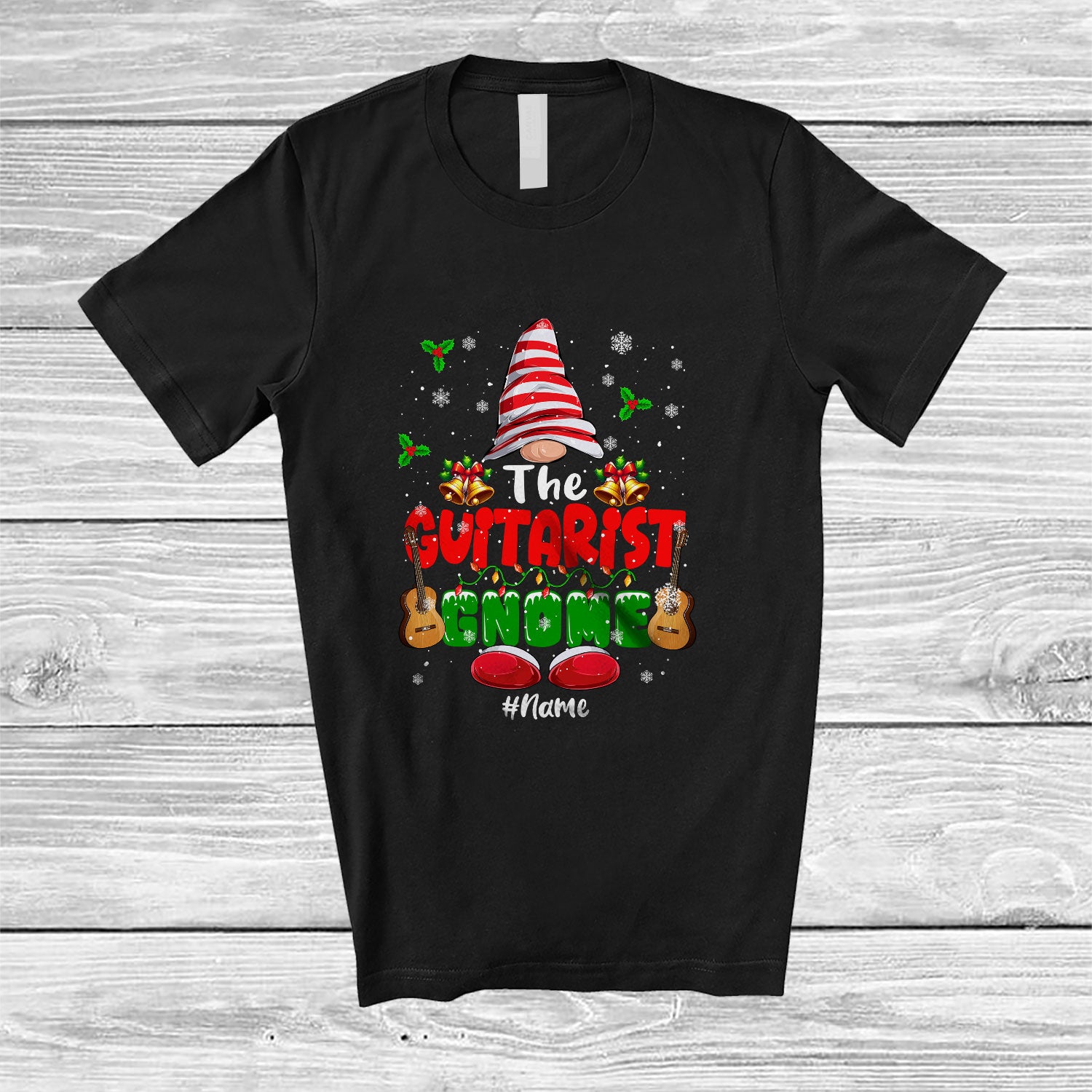 • Personalized Custom Name The Guitarist Gnome; Lovely Christmas Gnome Snow; Family Group T-Shirt. This cotton t-shirt is a durable staple product with a classic fit. One of the most popular items, it has a relaxed style made for everyday and casual wear.