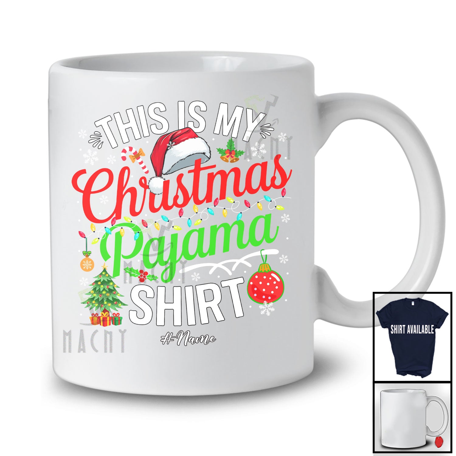 • Personalized Custom Name This Is My Christmas Pajama Shirt; Amusing X-mas Lights Santa; Family T-Shirt. This cotton t-shirt is a durable staple product with a classic fit. One of the most popular items, it has a relaxed style made for everyday and casual wear.