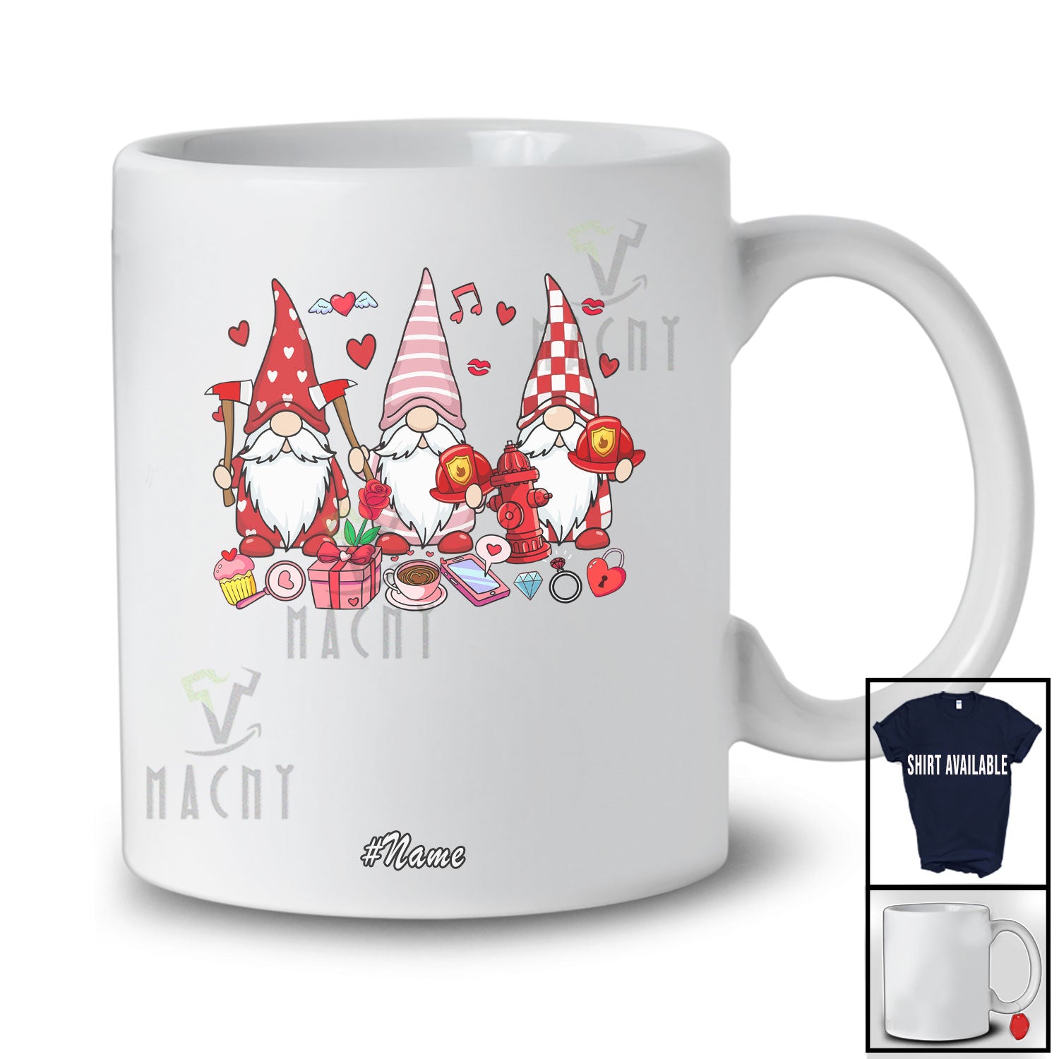 new MacnyStore - Personalized Custom Name Three Gnomes Firefighter Valentine; Lovely Gnomies Proud Jobs T-Shirt – Macnystore