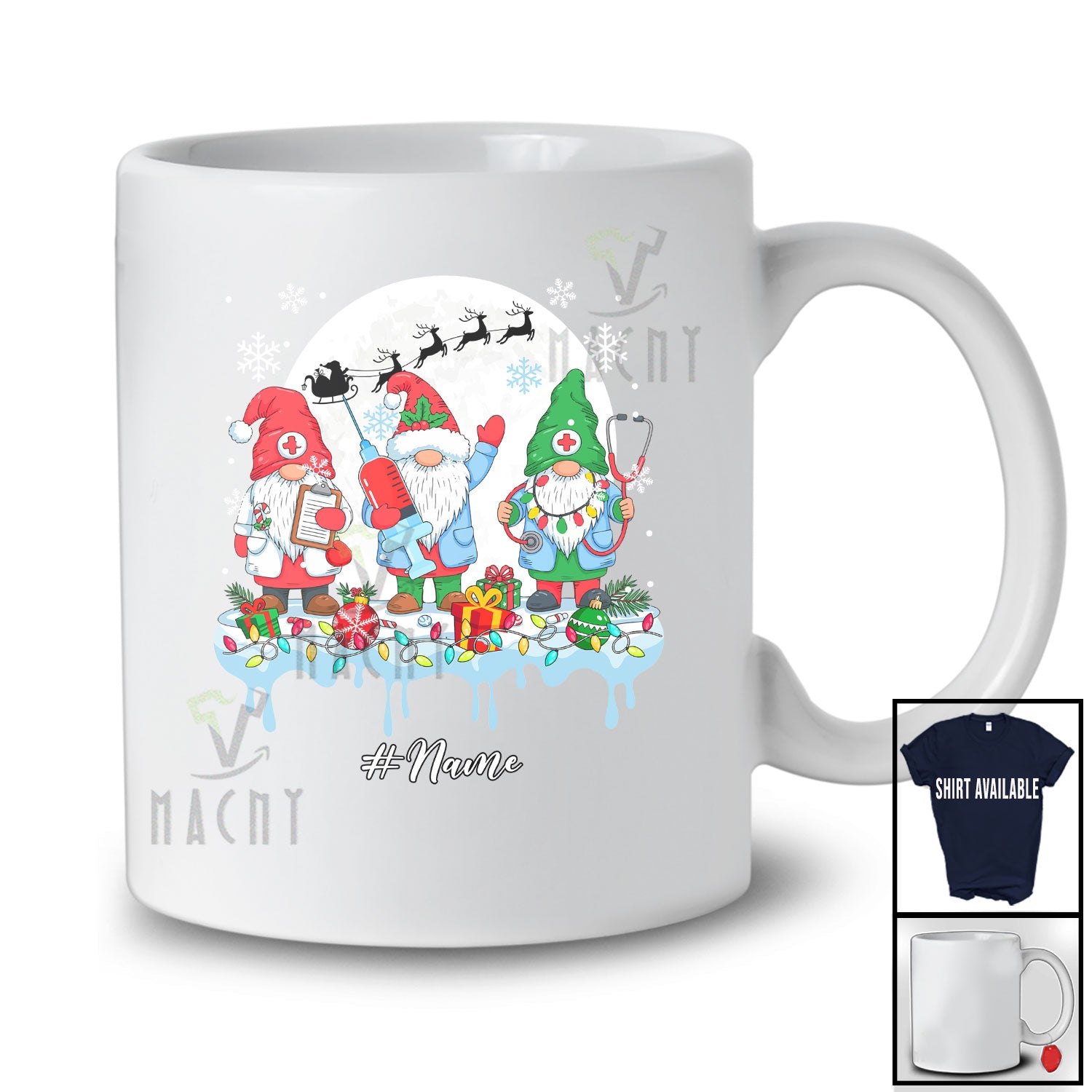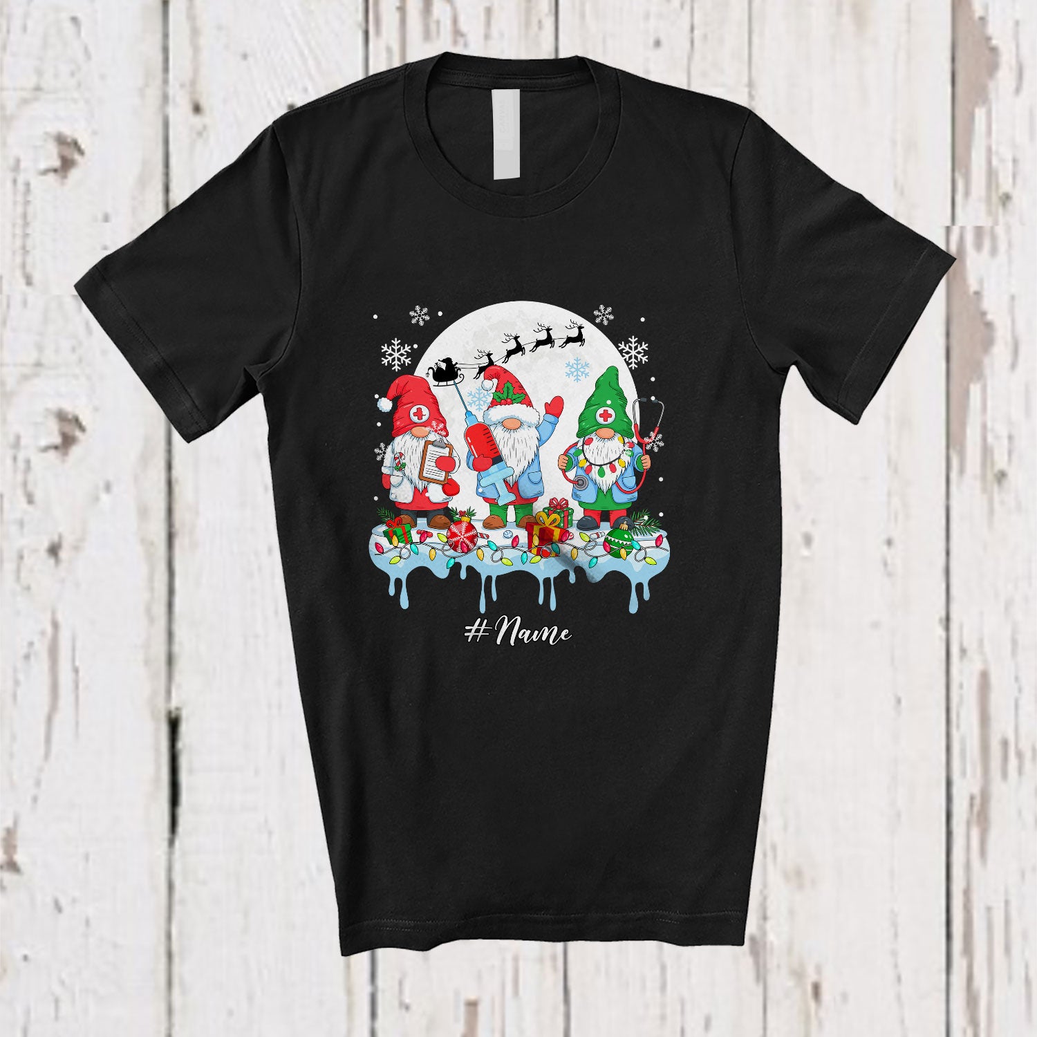 Personalized Custom Name Three Gnomes With Nurse Tools; Joyful Christmas Moon Family T-Shirt