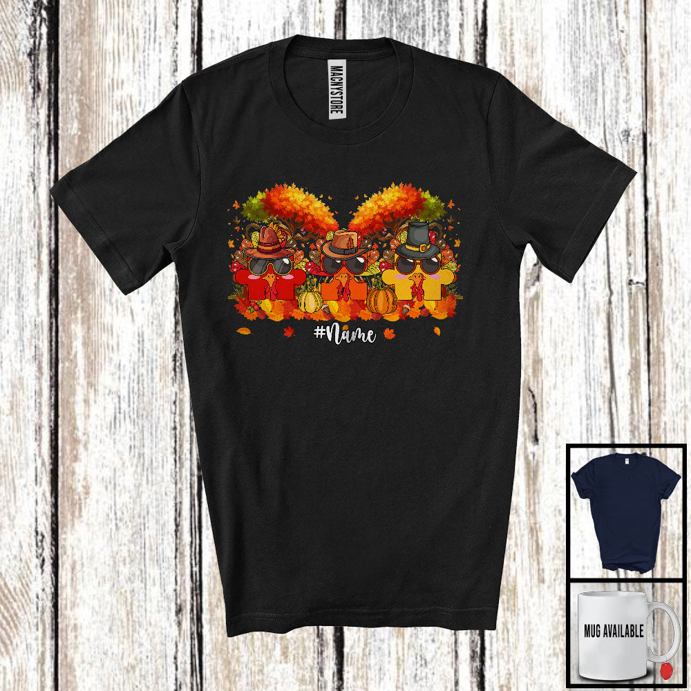 Personalized Custom Name Three Puzzle Piece Turkeys; Amazing Thanksgiving Autism Awareness Family T-Shirt