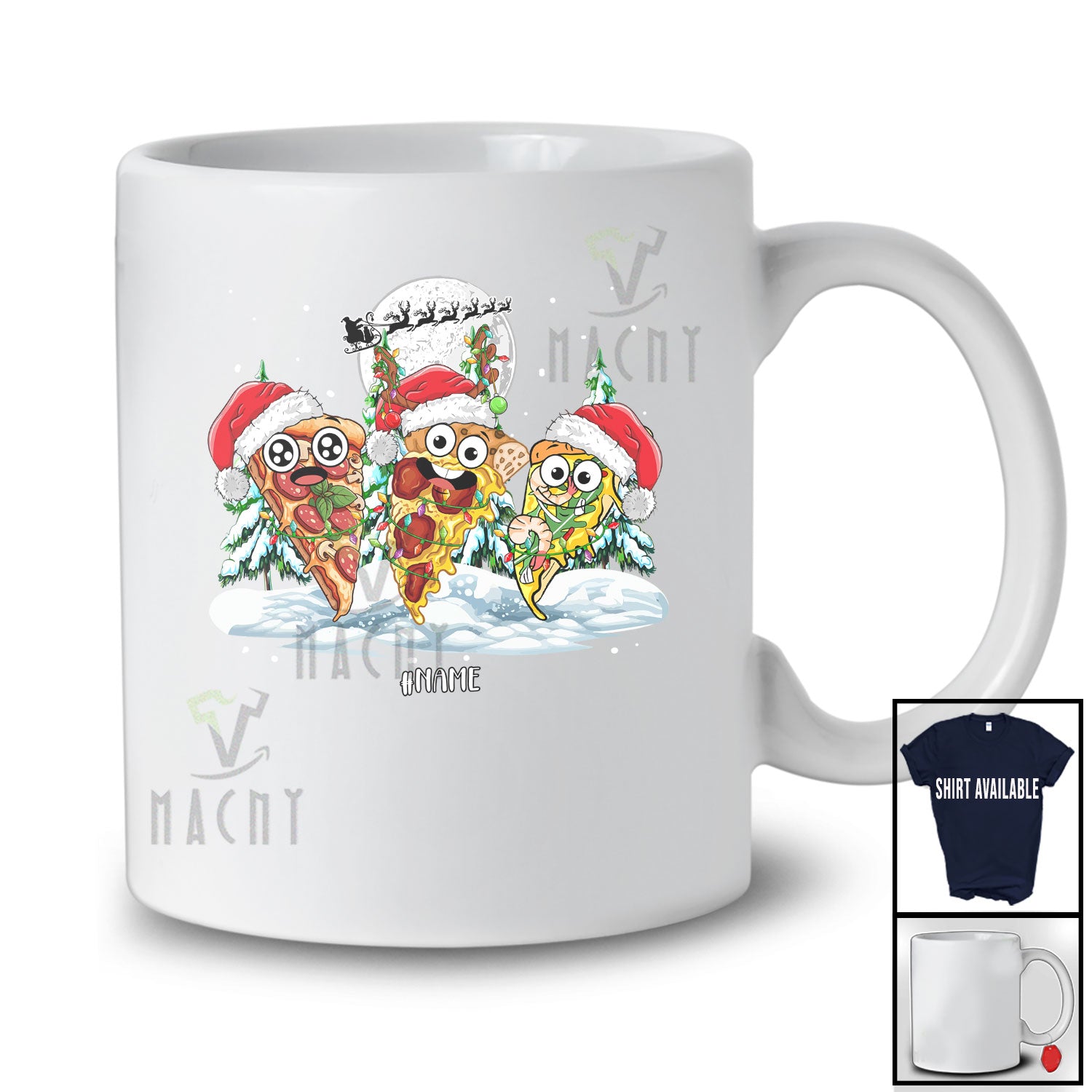 Every product is unique, just like you. If you're looking for a product that fits the mold of your life, the Personalized Custom Name Three Santa Reindeer Pizza; Lovely Christmas Moon Tree Food Lover T-Shirt is for you.