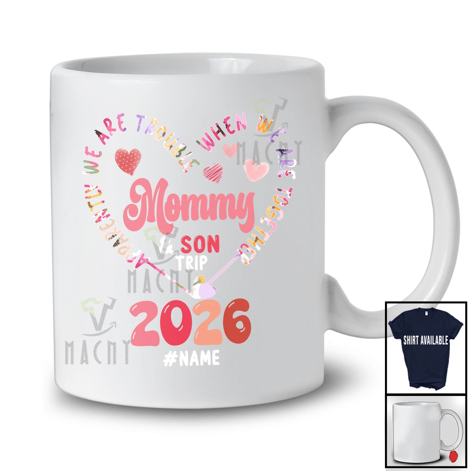 This Personalized Custom Name Trouble Mommy Son Trip 2026; Proud Mother's Day Floral Heart T-Shirt is great idea gift for your family, friends in this birthday, christmas, mother's day, father's day, patrick's day or any holiday.
