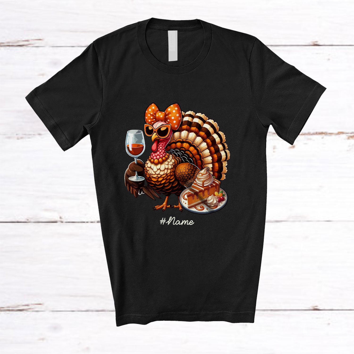 Personalized Custom Name Turkey Drinking Wine; Joyful Thanksgiving Bow Tie; Women Drunker T-Shirt
