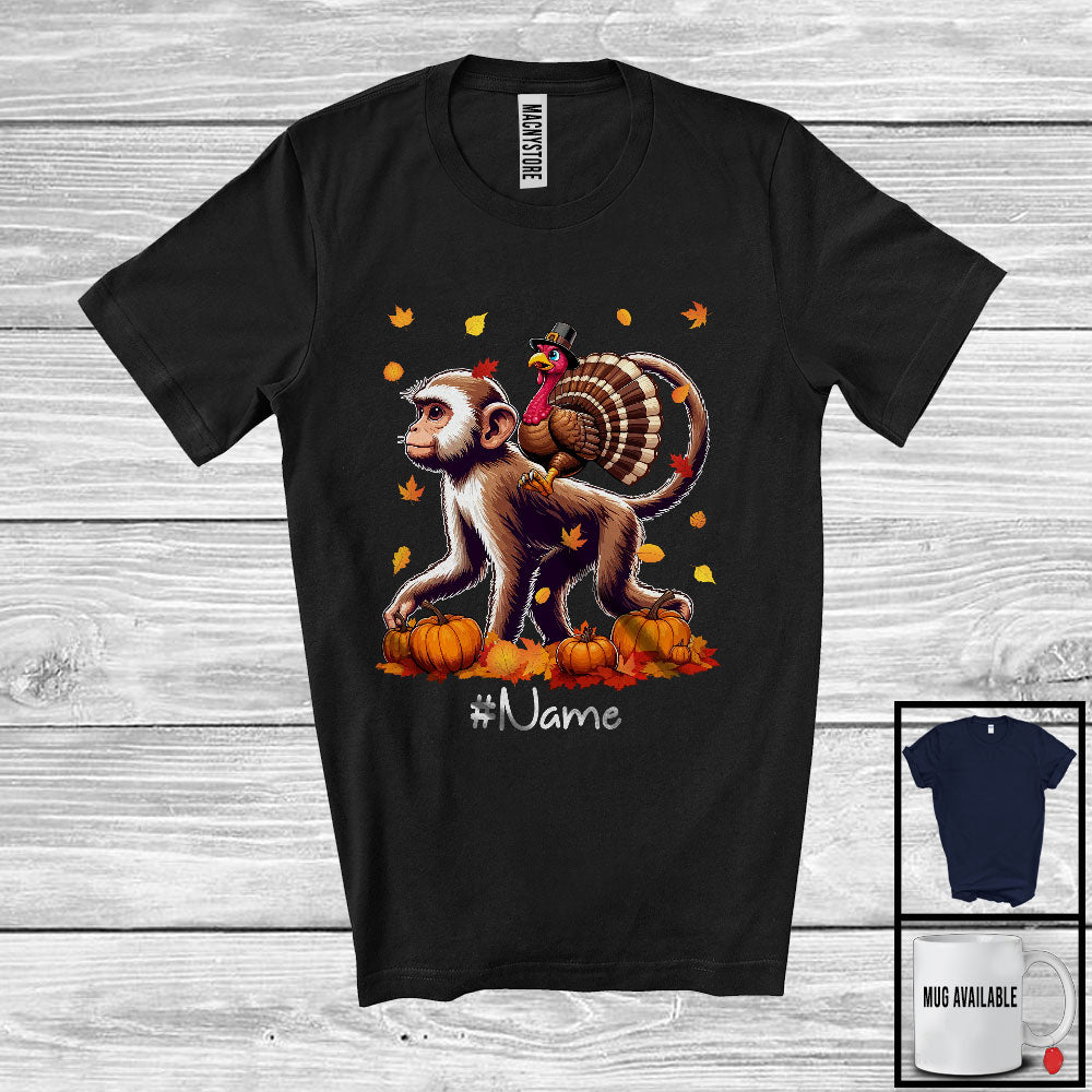 Personalized Custom Name Turkey Riding Monkey, Lovely Thanksgiving Pumpkins, Monkey Lover T-Shirt