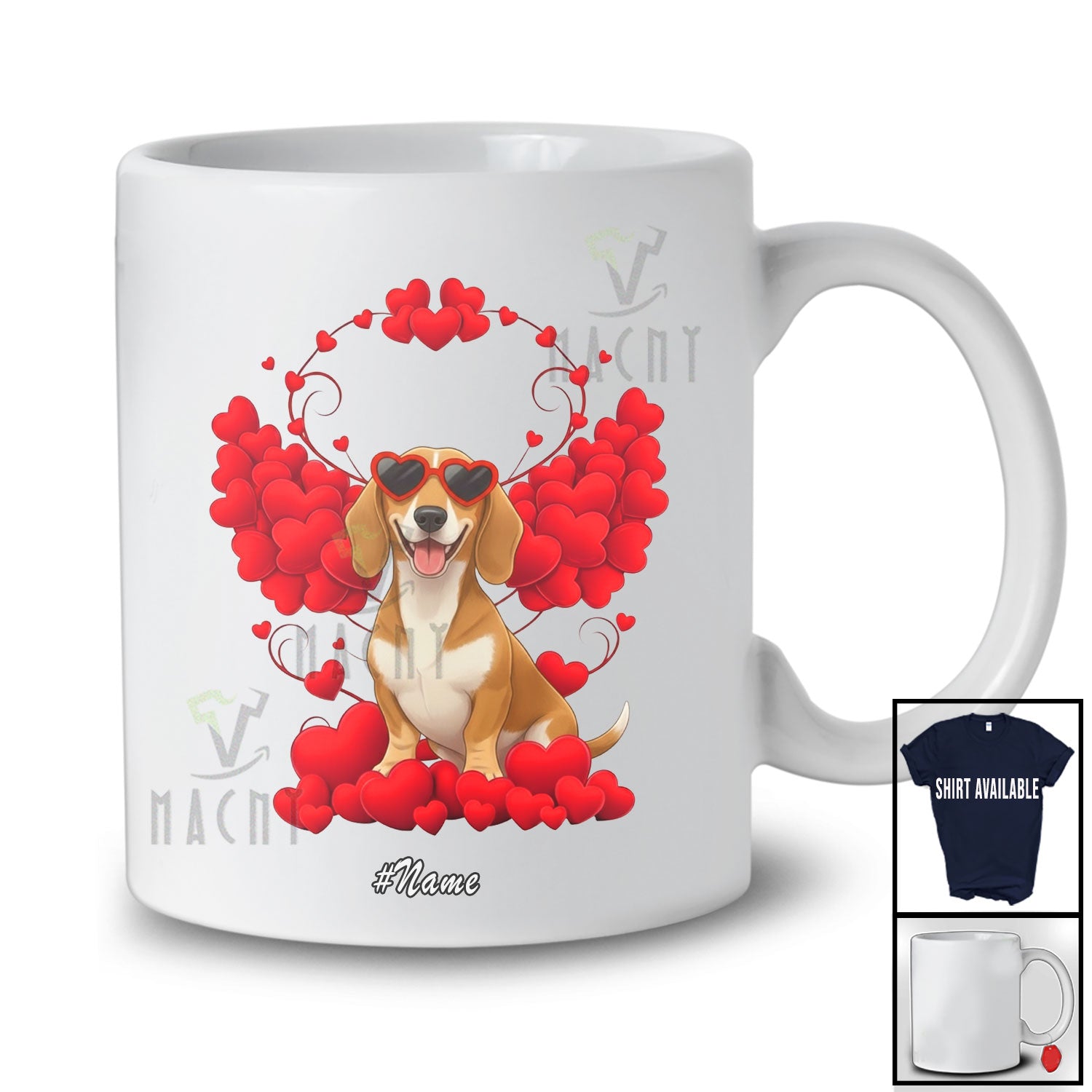 Personalized Custom Name Valentine Dachshund Sunglasses; Lovely Valentine's Day Hearts T-Shirt. This cotton t-shirt is a durable staple product with a classic fit. One of the most popular items, it has a relaxed style made for everyday and casual wear.