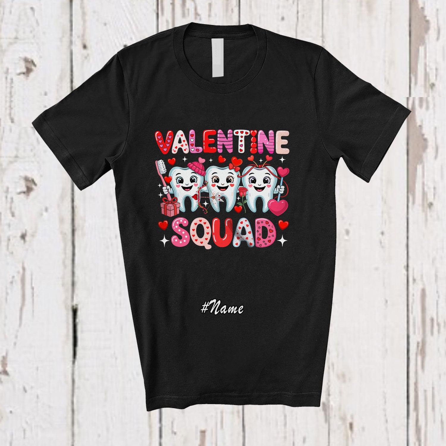 Personalized Custom Name Valentine Squad; Lovely Three Teeth With Heart; Dental Dentist T-Shirt