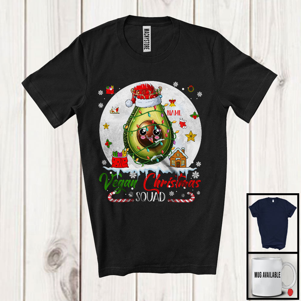 Personalized Custom Name Vegan Christmas Squad, Joyful X-mas Santa Reindeer Avocado, Fruit T-Shirt