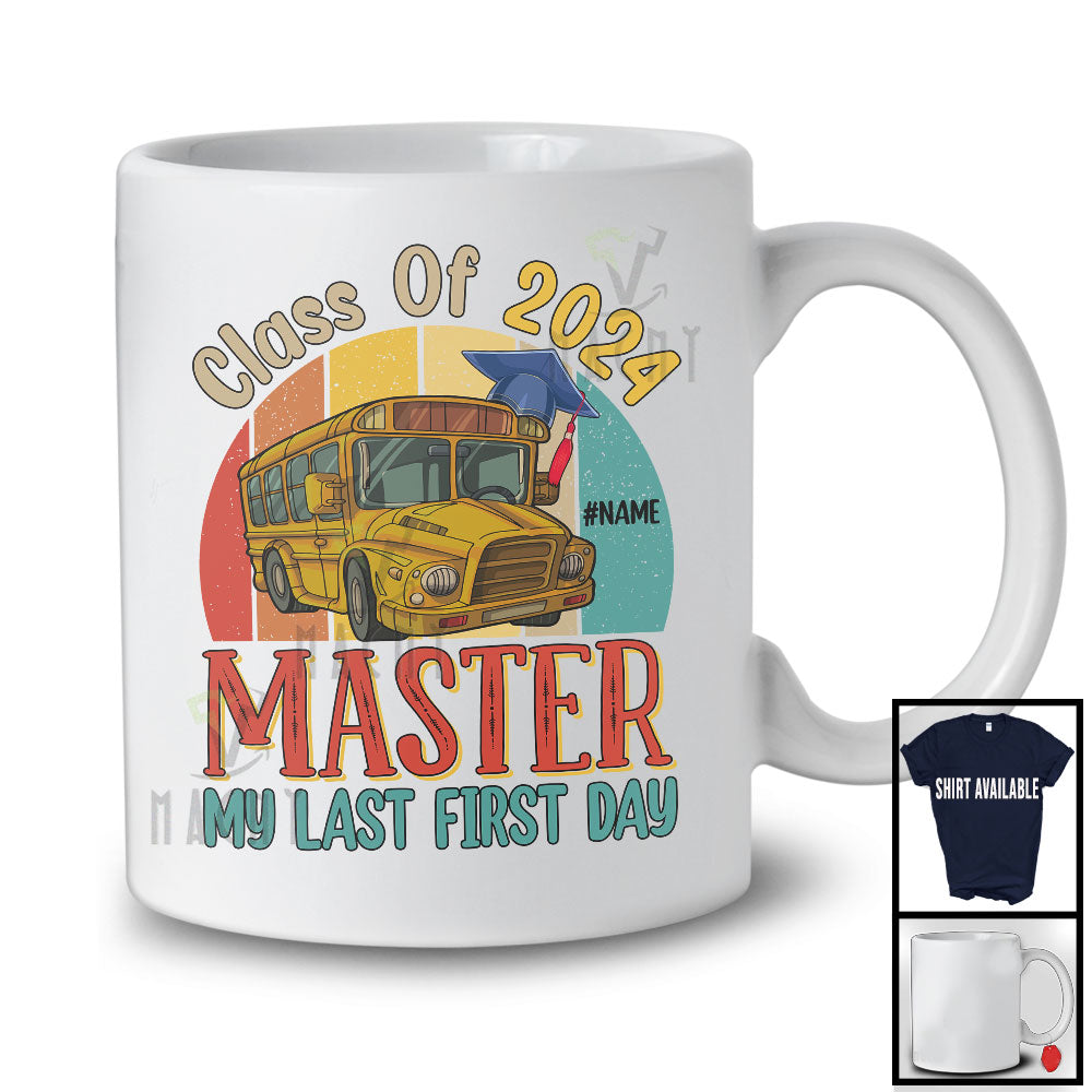 Personalized Custom Name Vintage Retro Class Of 2024 Master My Last First Day, Proud Back To School Bus T-Shirt