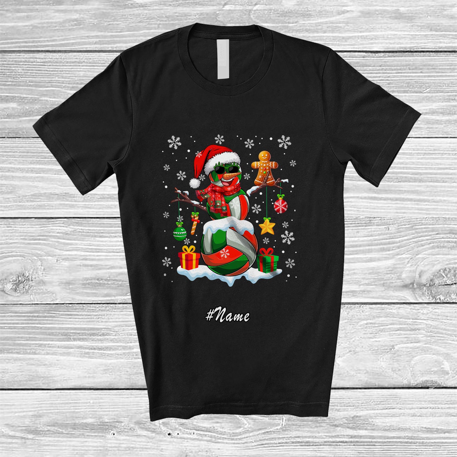Personalized Custom Name Volleyball Snowman Santa Snow; Amazing Christmas Sport Player Team T-Shirt