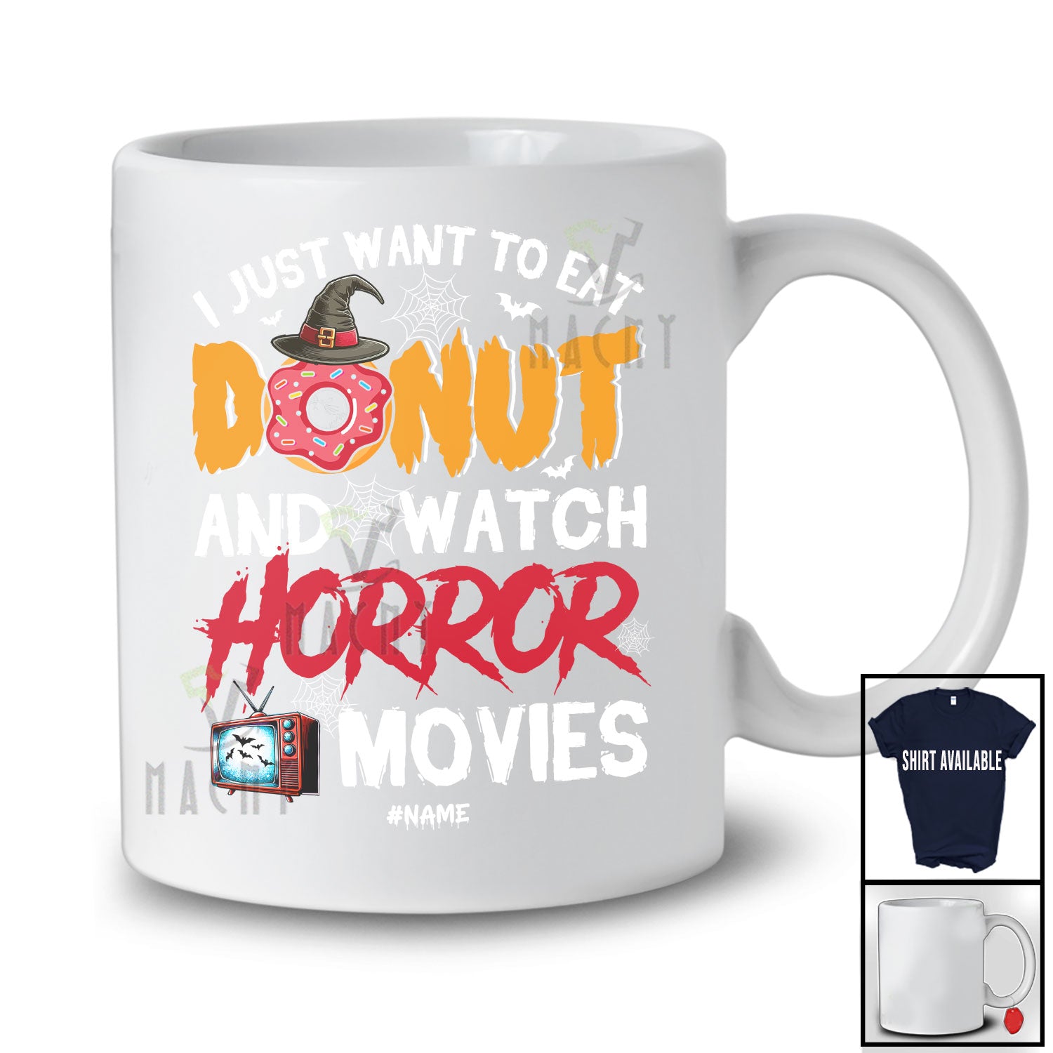Personalized Custom Name Want To Eat Donut And Watch Horror Movies; Scary Halloween Family T-Shirt. This cotton t-shirt is a durable staple product with a classic fit. One of the most popular items, it has a relaxed style made for everyday and casual wear.