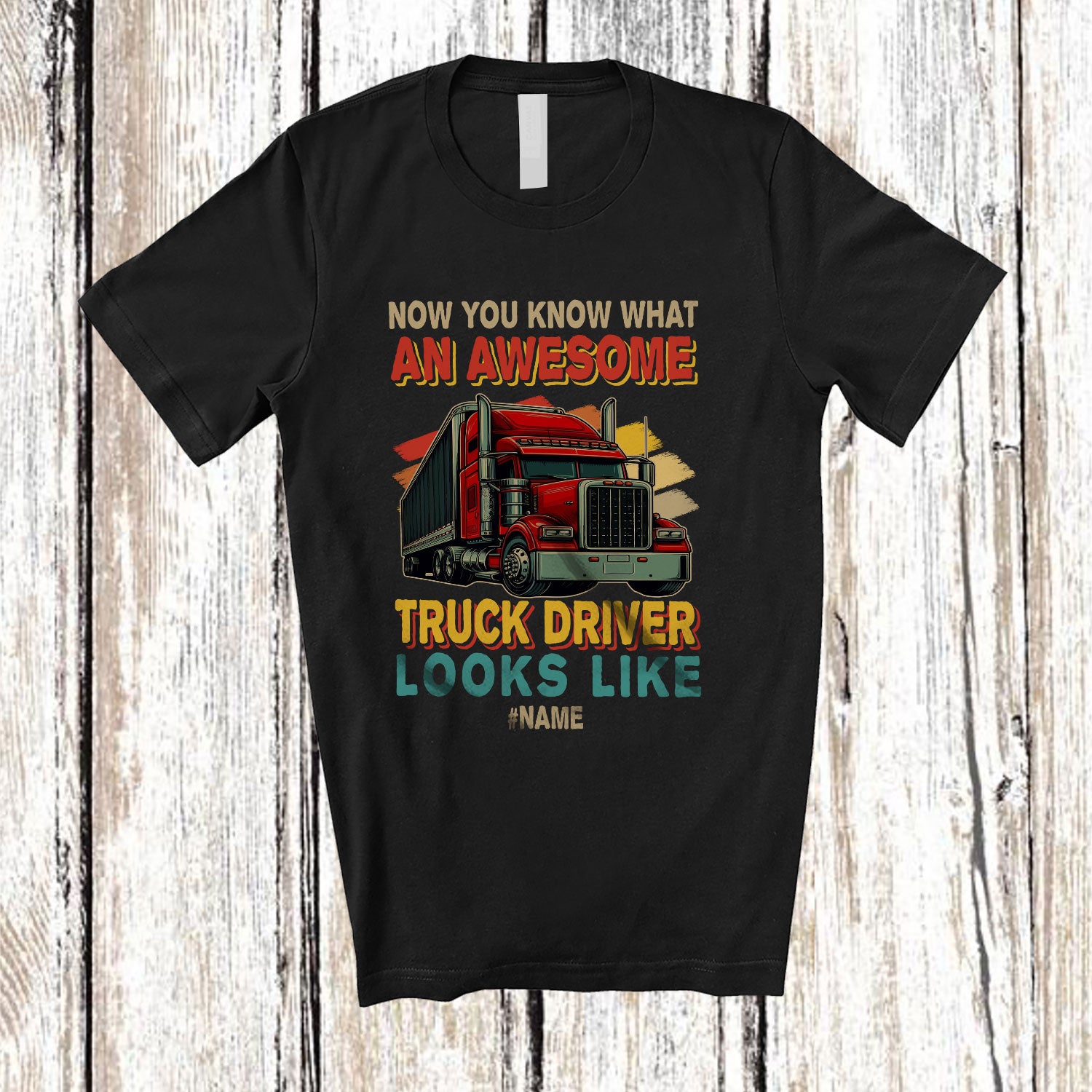 Personalized Custom Name What An Awesome Truck Driver Looks Like; Proud Vintage Truck Driver T-Shirt