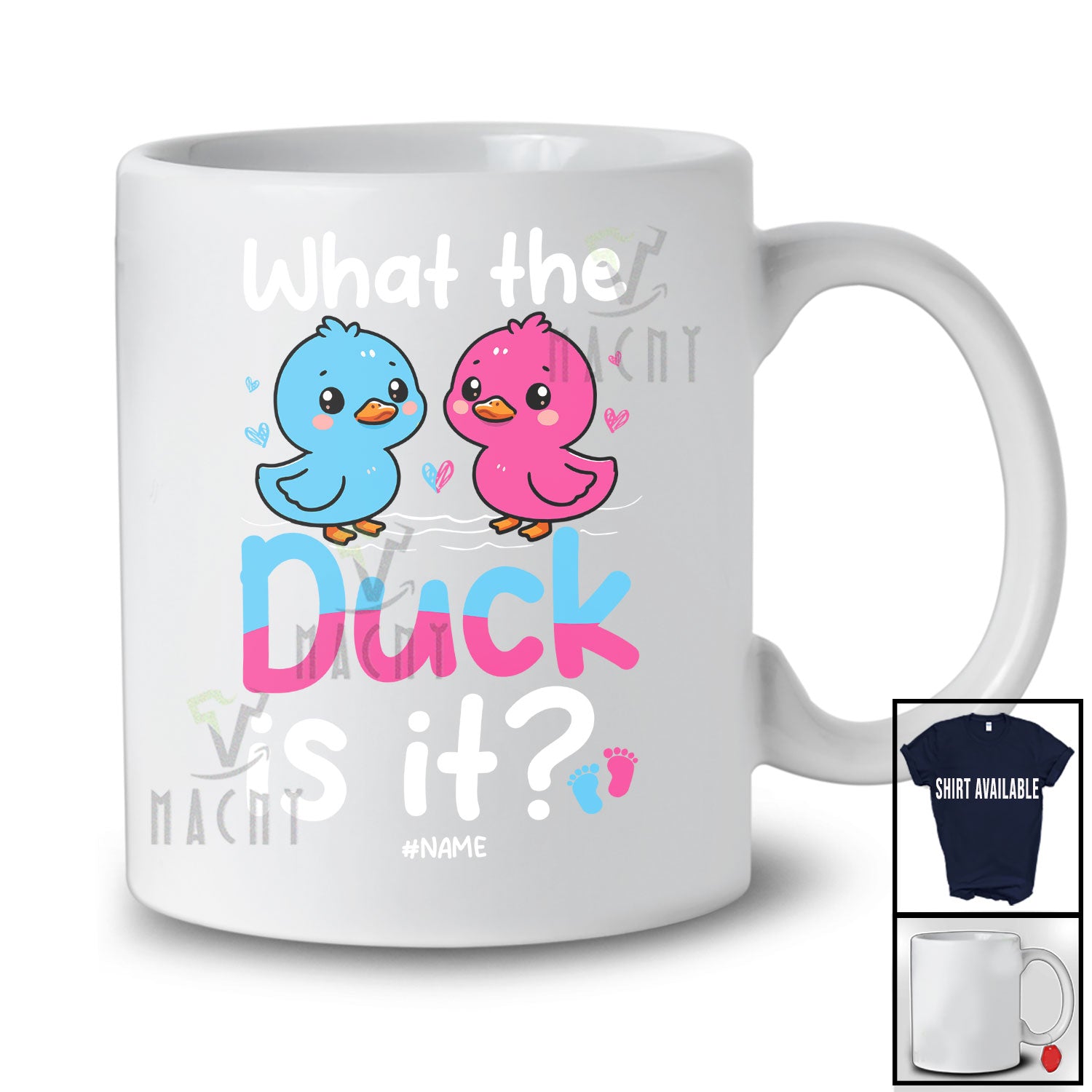 Personalized Custom Name What The Duck Is It; Adorable Pregnancy Gender Reveal Birds; Family T-Shirt. This cotton t-shirt is a durable staple product with a classic fit. One of the most popular items, it has a relaxed style made for everyday and casual wear.