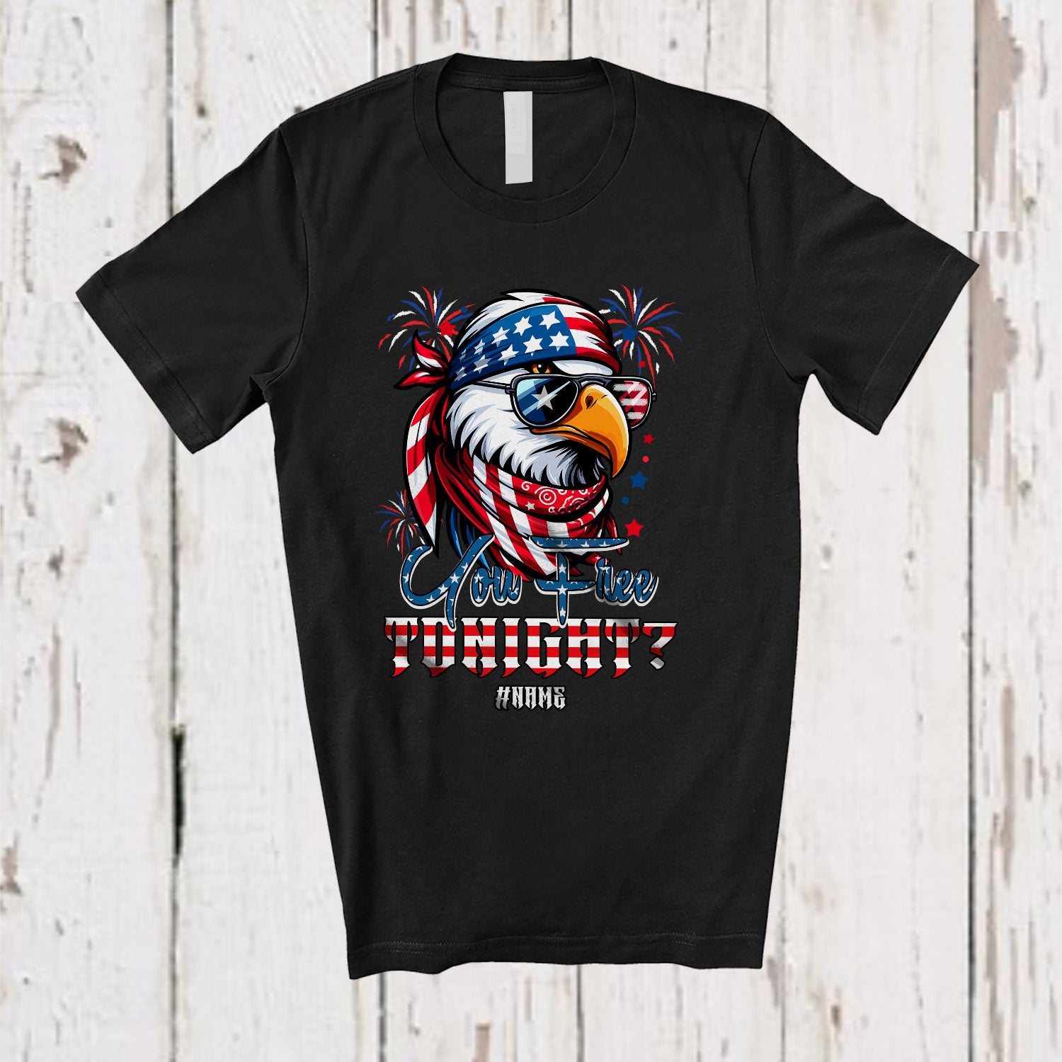 Personalized Custom Name You Free Tonight; Awesome 4th Of July American Flag Eagle; Patriotic T-Shirt. This cotton t-shirt is a durable staple product with a classic fit. One of the most popular items, it has a relaxed style made for everyday and casual wear.