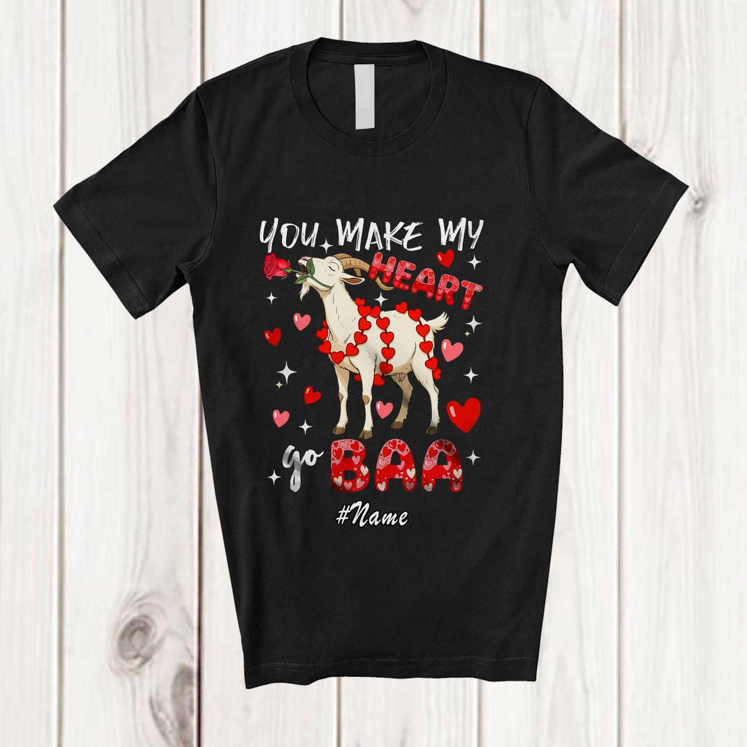 Personalized Custom Name You Make My Heart Go Baa; Lovely Valentine Hearts Goat Farmer T-Shirt