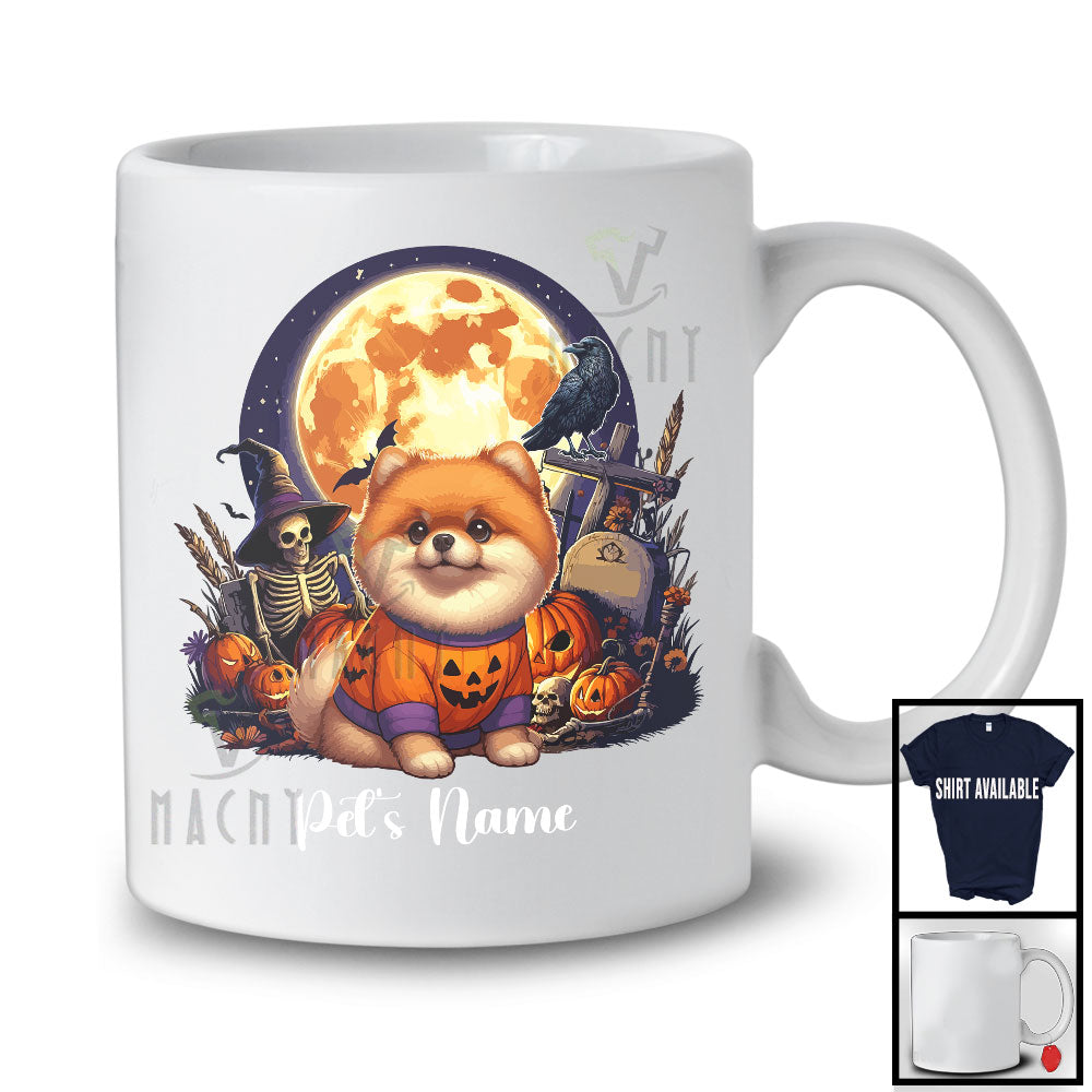 The Personalized Custom Puppy's Name Pomeranian Dog, Lovely Halloween Skeleton Pumpkins T-Shirt is evocative, to say the least, but that's why you're drawn to it in the first place.