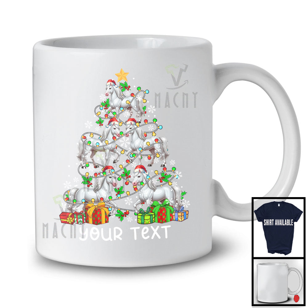 The Personalized Custom Text Santa Horse Christmas Tree; Joyful X-mas Lights Farm Farmer T-Shirt destined to impress, and priced at only $12.95, for a limited time.