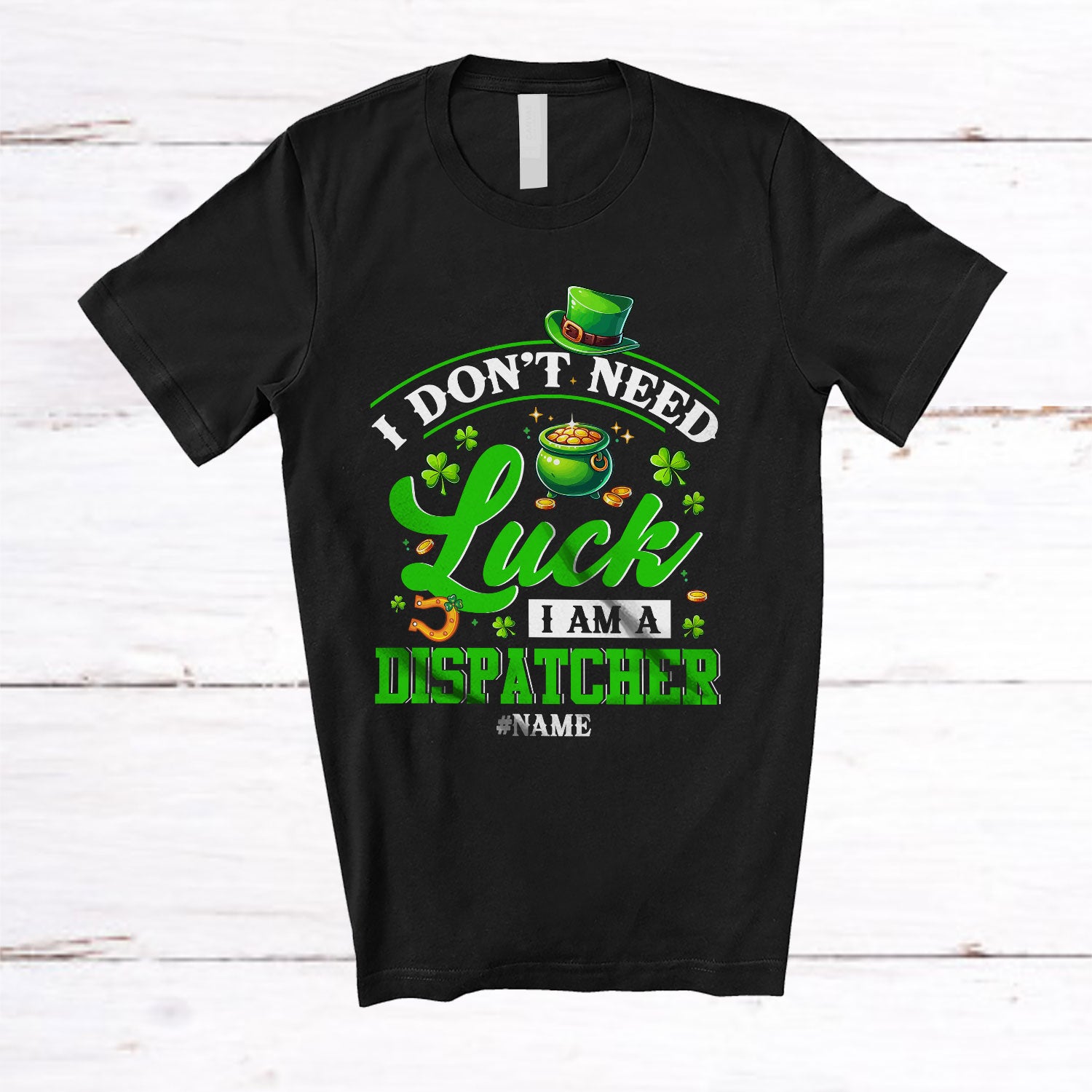 Personalized Don't Need Luck I'm A Dispatcher; Happy St. Patrick's Day Custom Name Shamrock T-Shirt